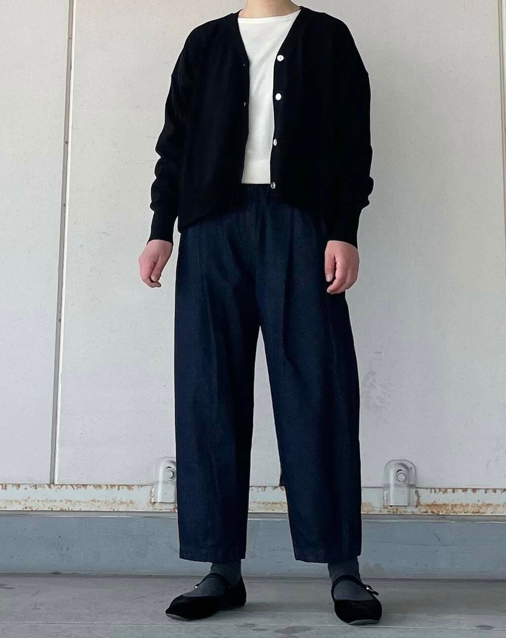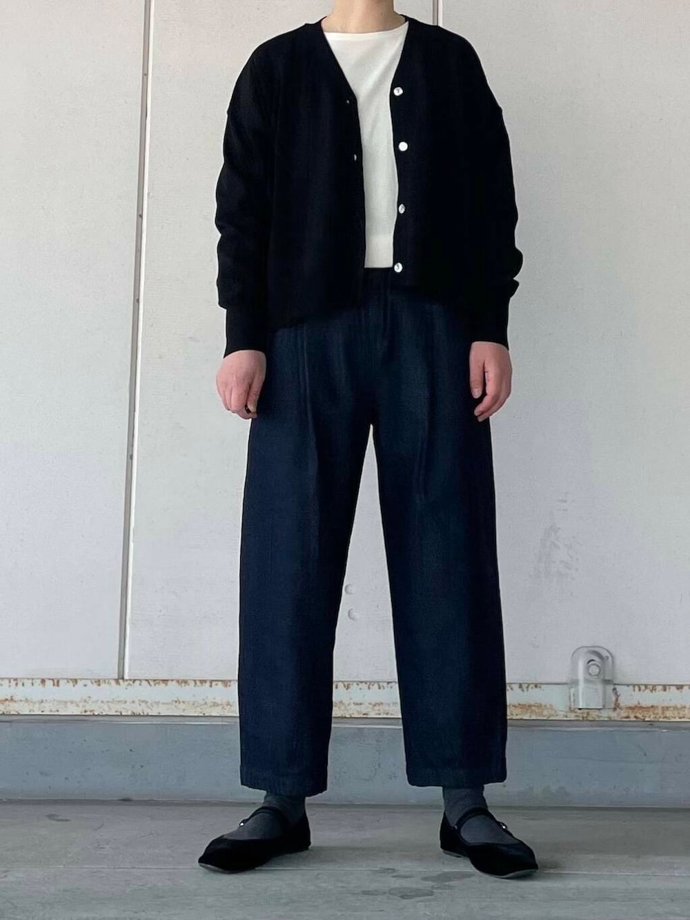 程よくワイドなシルエットにコンパクトな丈感は、パンツにもスカートにもあわせやすい1着です。