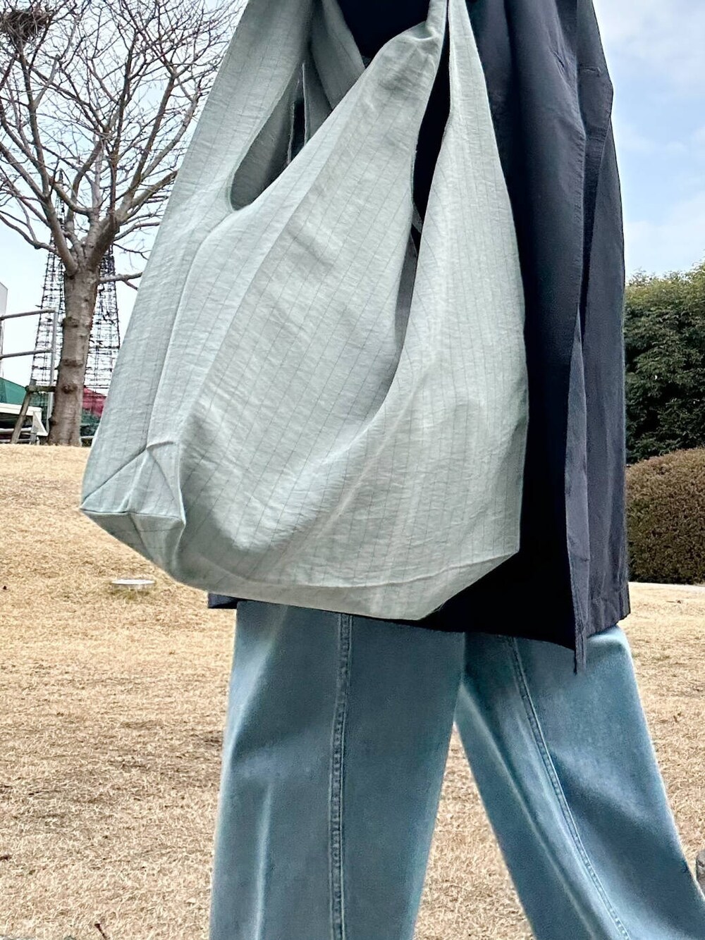 ショッパーバッグは肩からかけれるので普段のお買い物にも使いやすいサイズ感です。