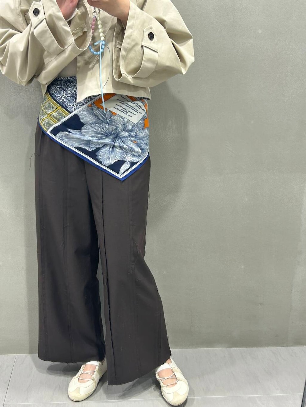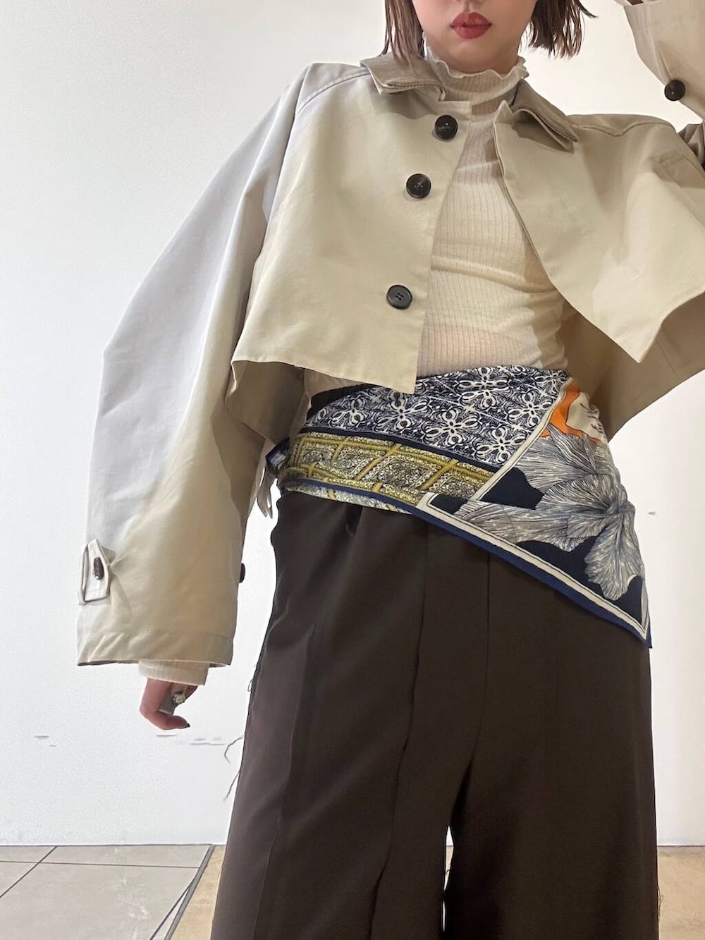 スカーフは頭に巻いたりしてアレンジ可能です!