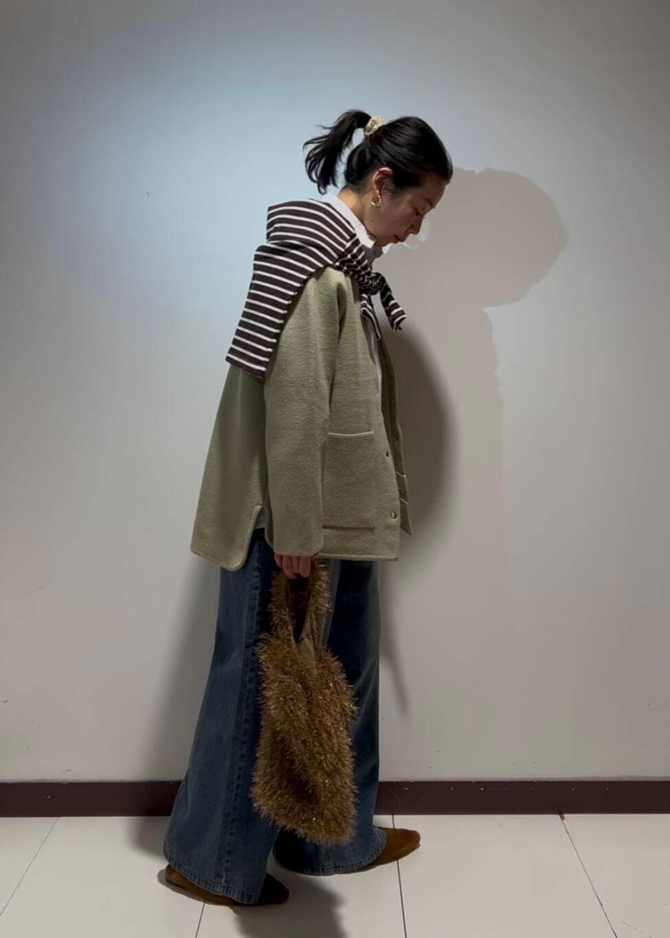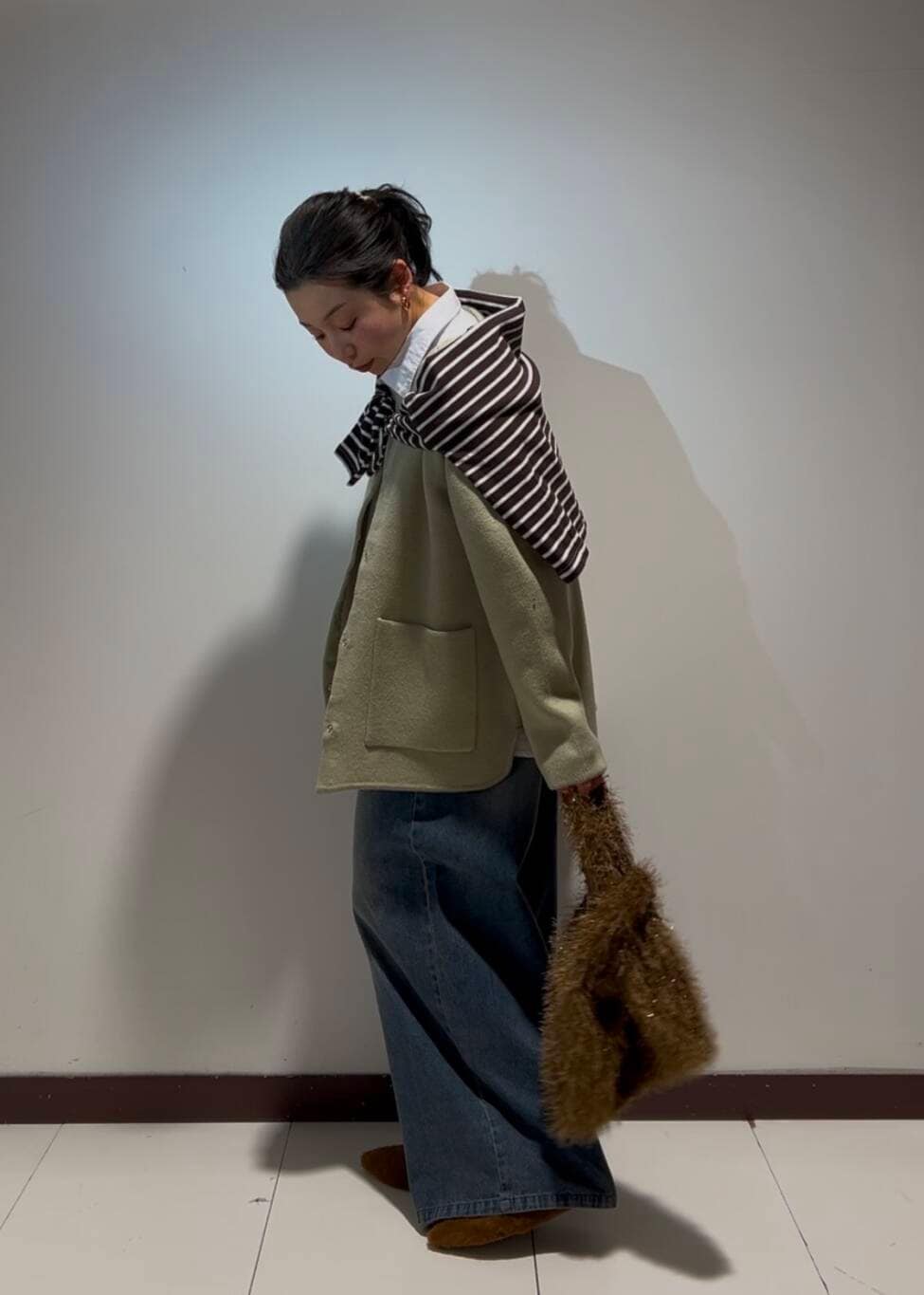 小物はブラウンで統一してシンプルなコーディネートにアクセントを🤎