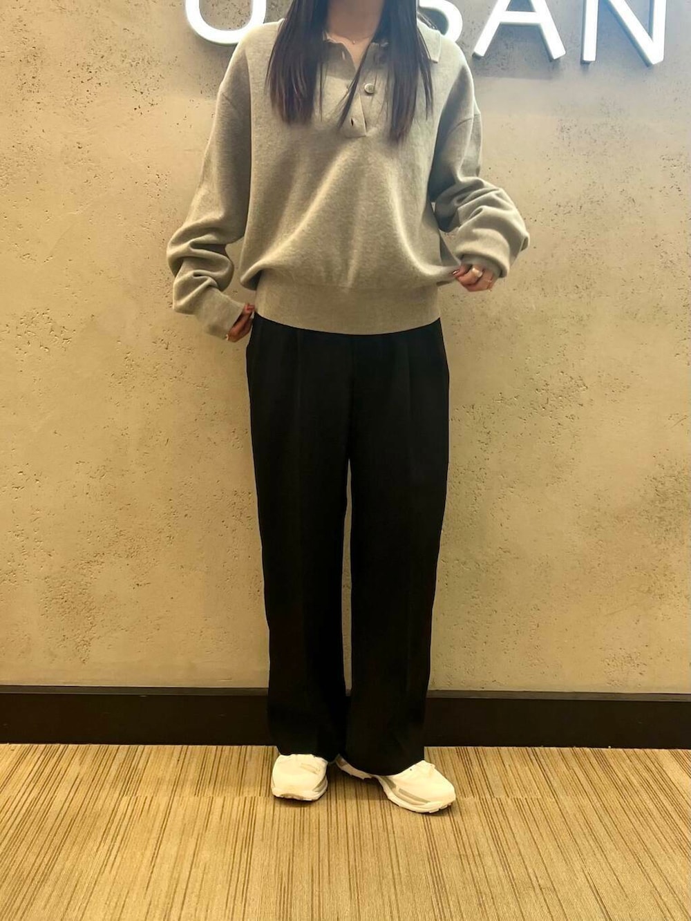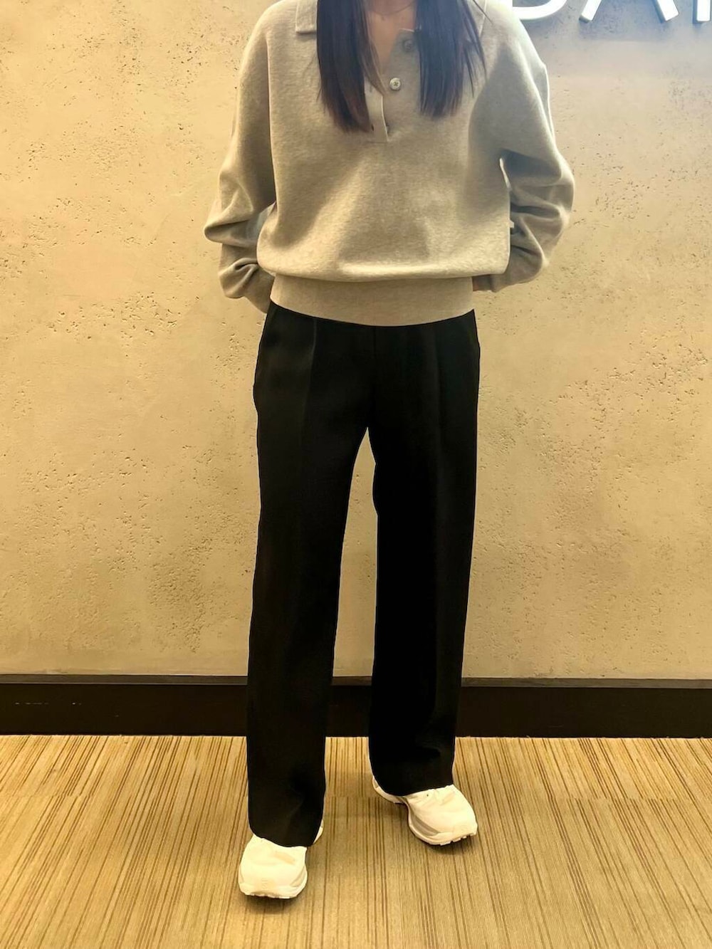 スラックスとスウェットライクシャツカラーニットでゆるっとコーデを組みました!