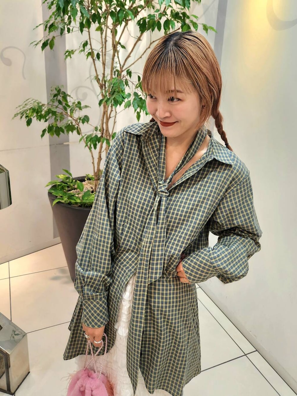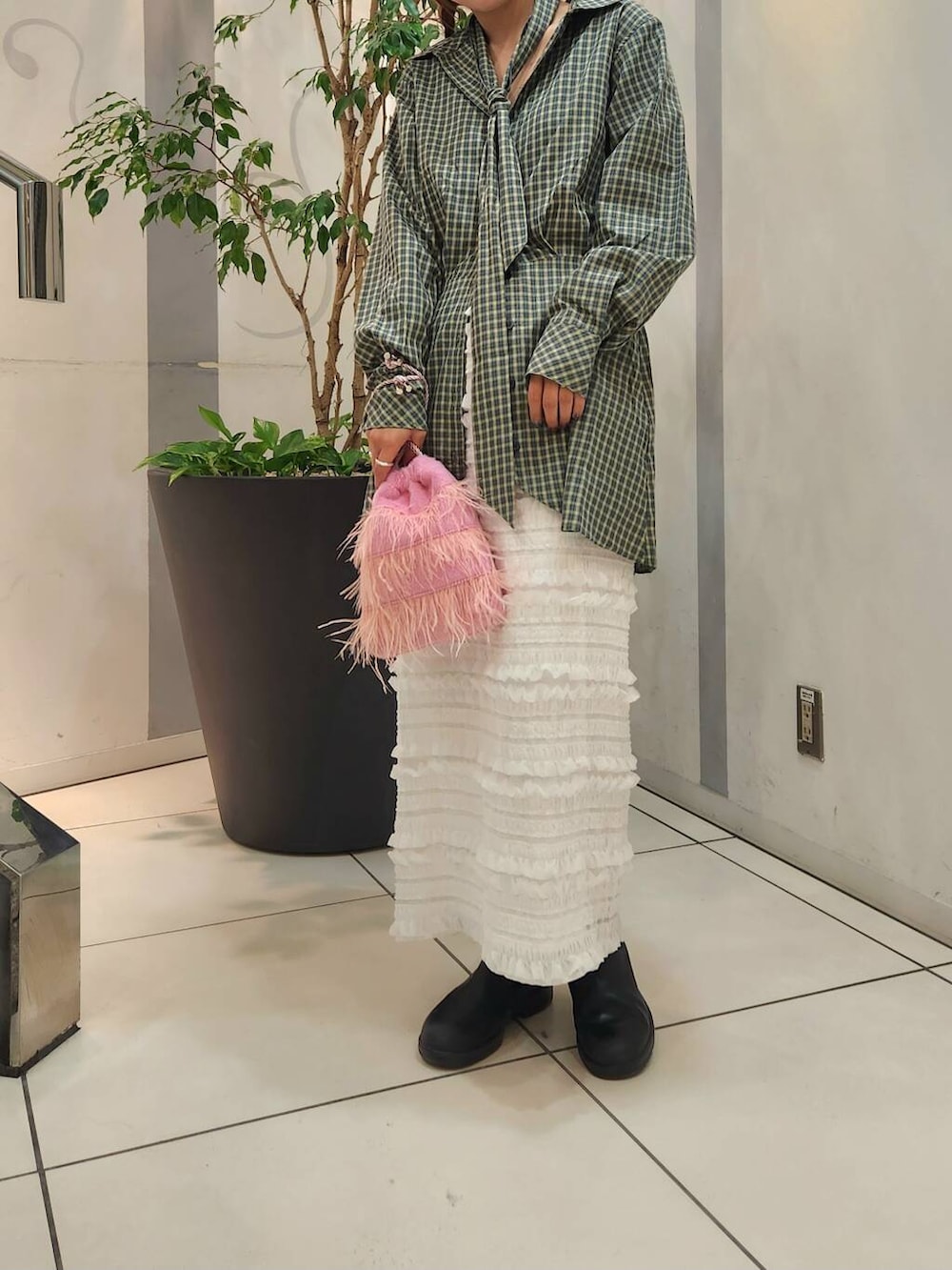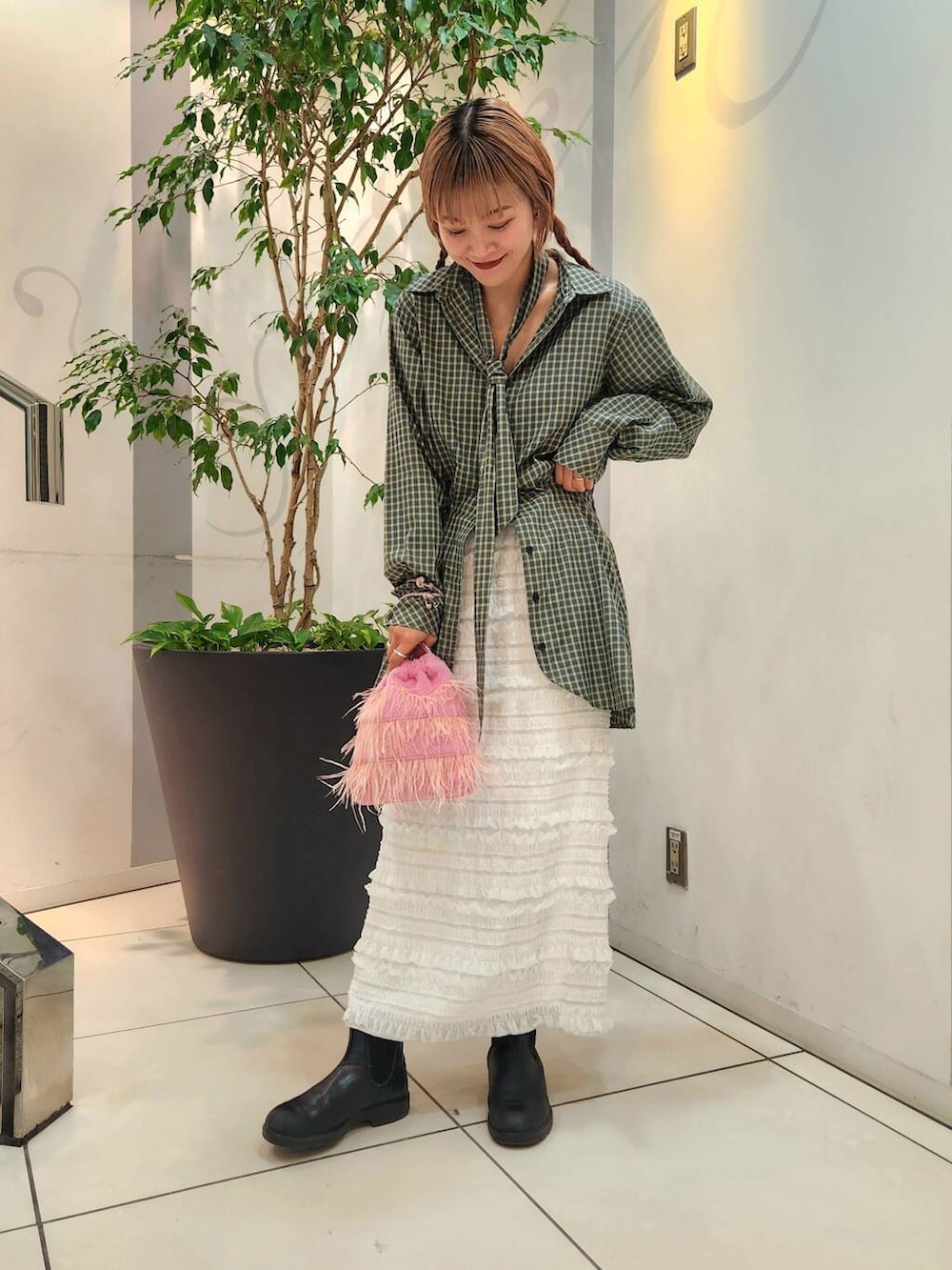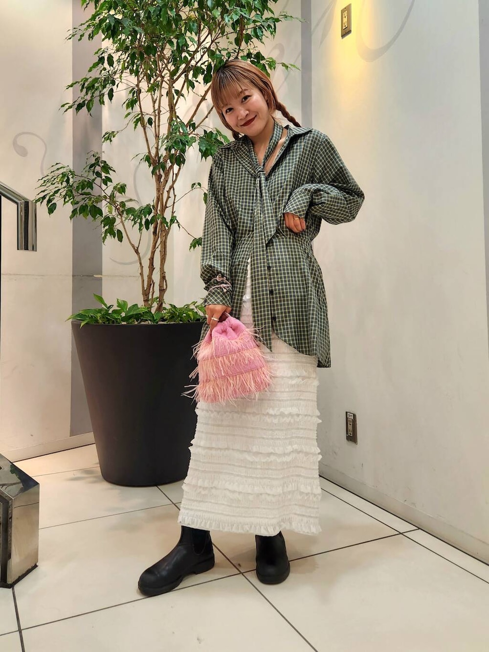 新作のチェックシャツをスカートで甘めに合わせてみました!