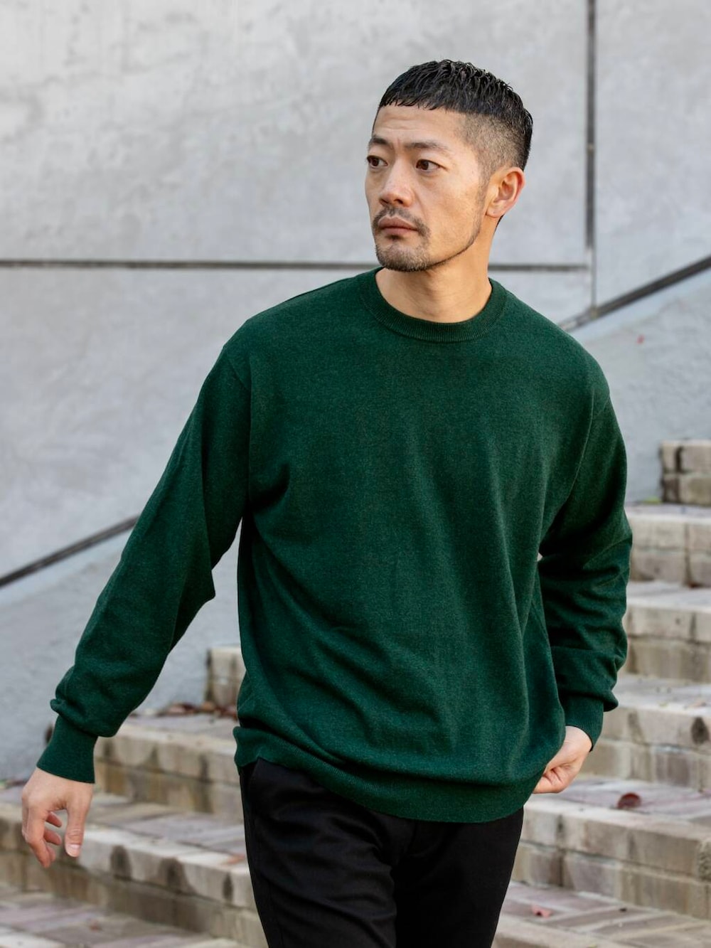 滑らかな綿カシミヤ素材にジャストルーズシルエット、シーズン長く着用できる1枚。