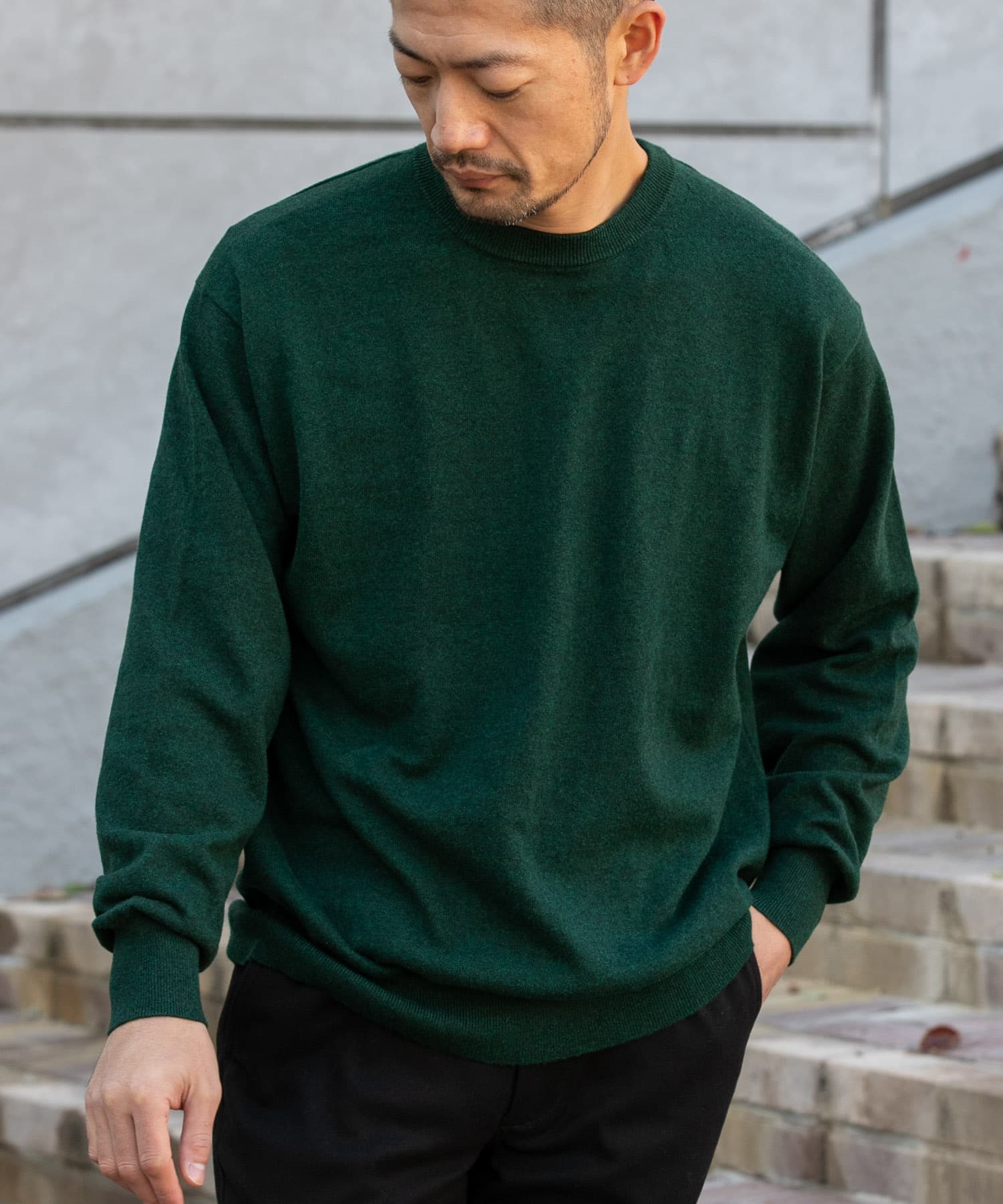『一部WEB限定カラー』綿カシミヤクルーネックニット