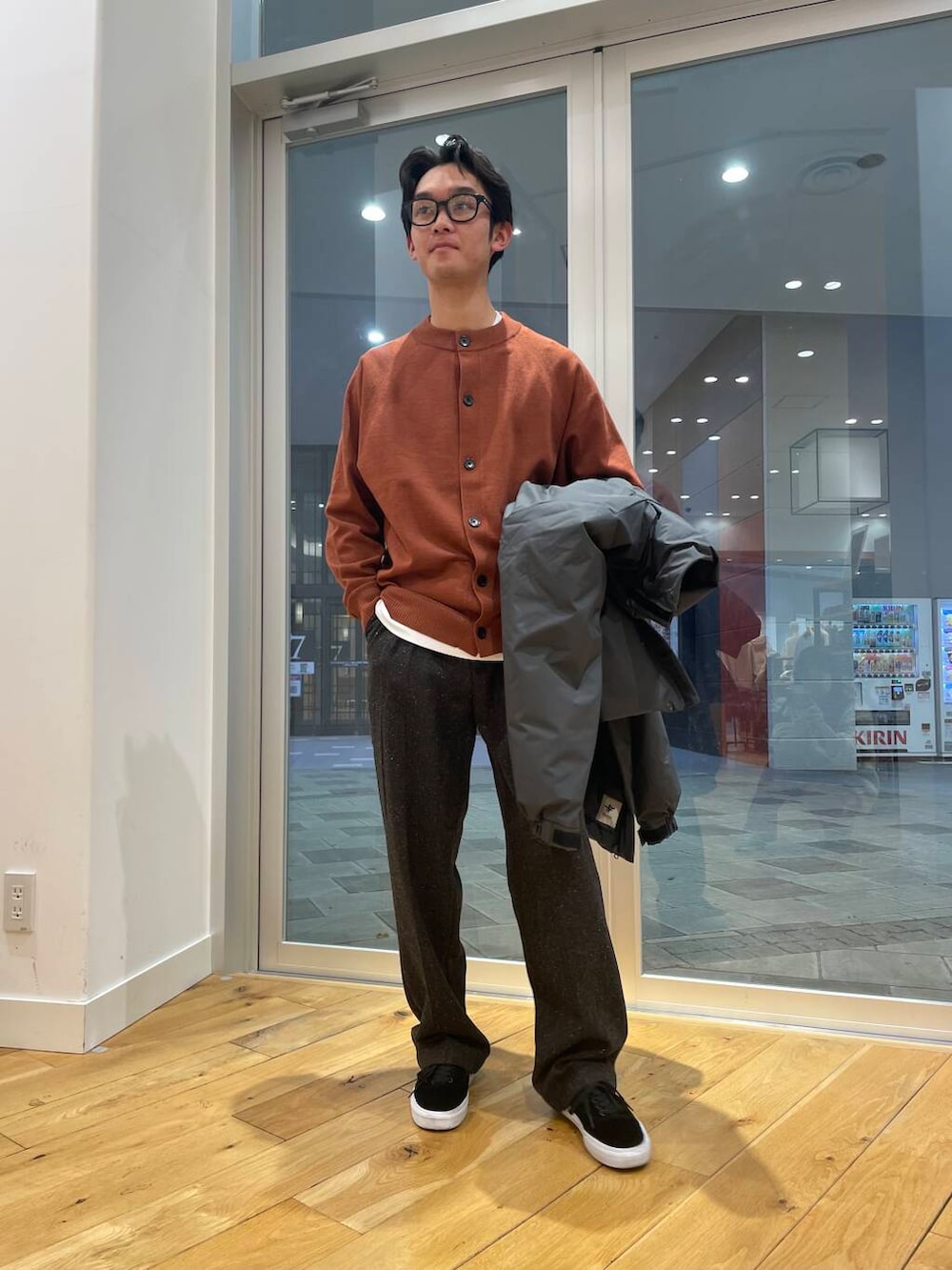 パンツはオレンジに合う、ブラウンで統一感のあるコーデに!