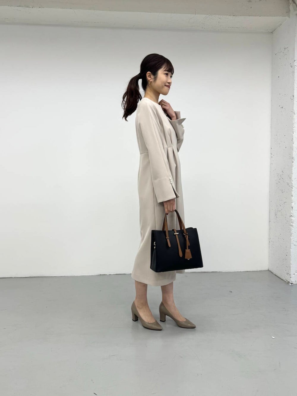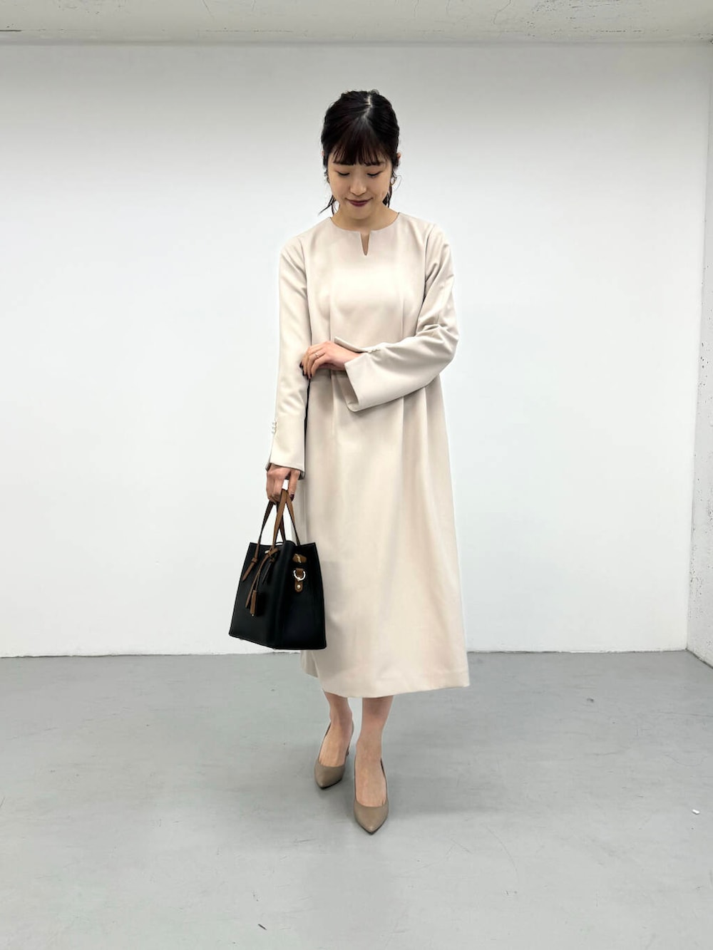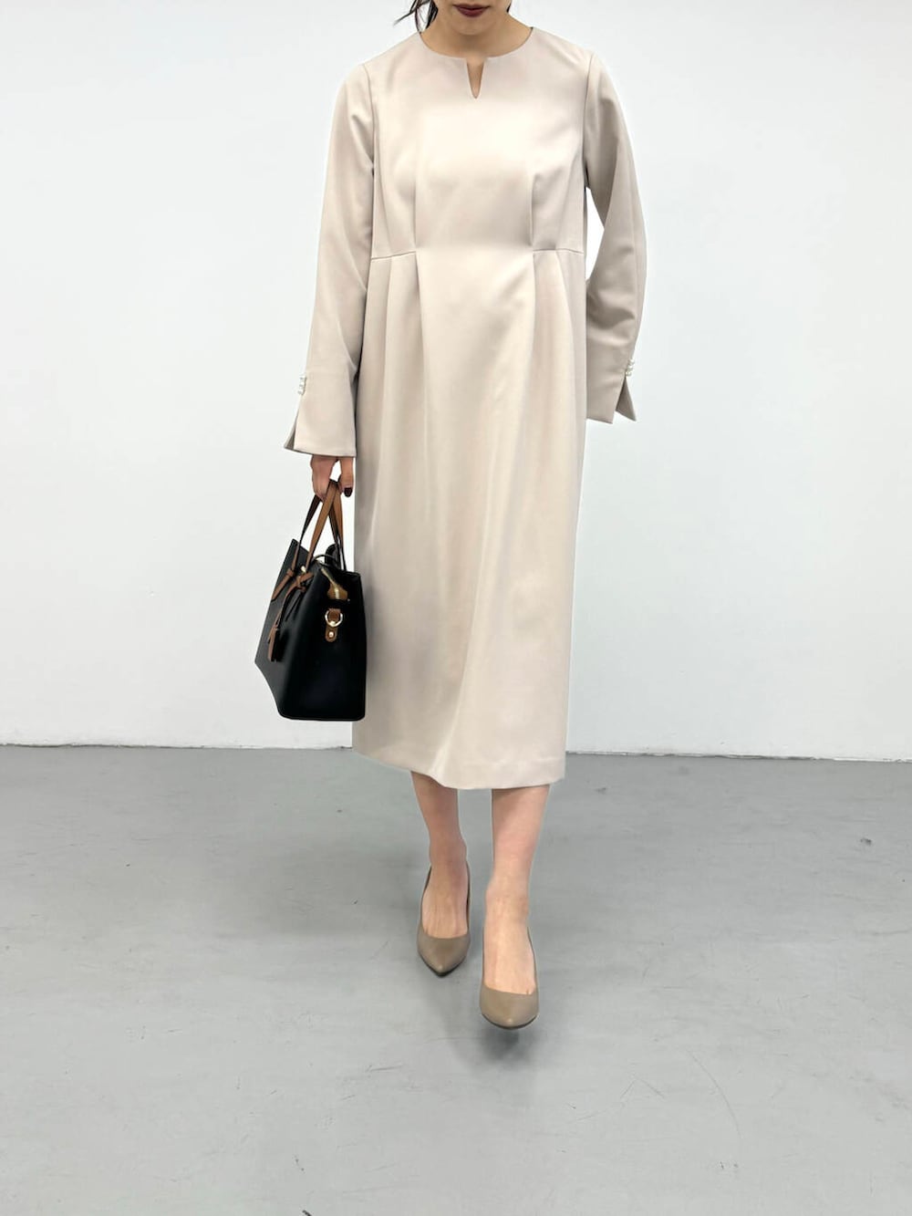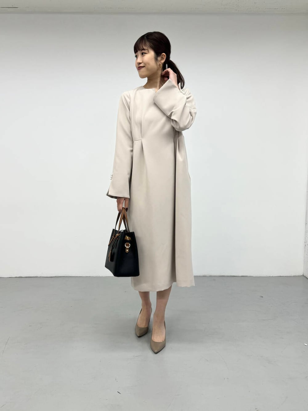 1枚で品よく見える、 袖パールサイドタックワンピースを着用しました♪