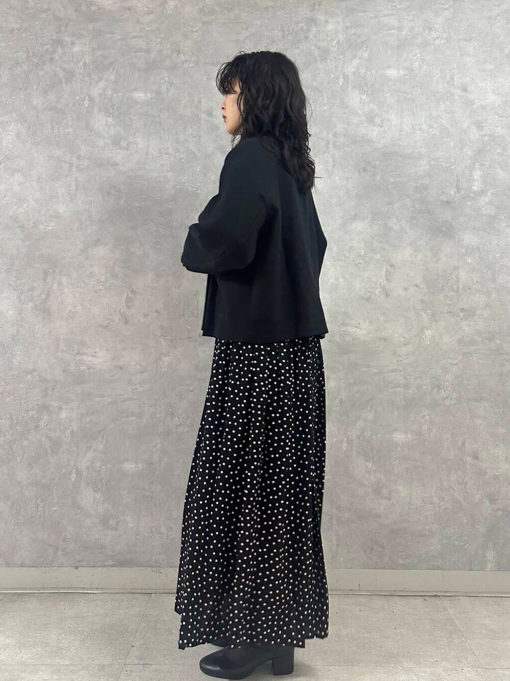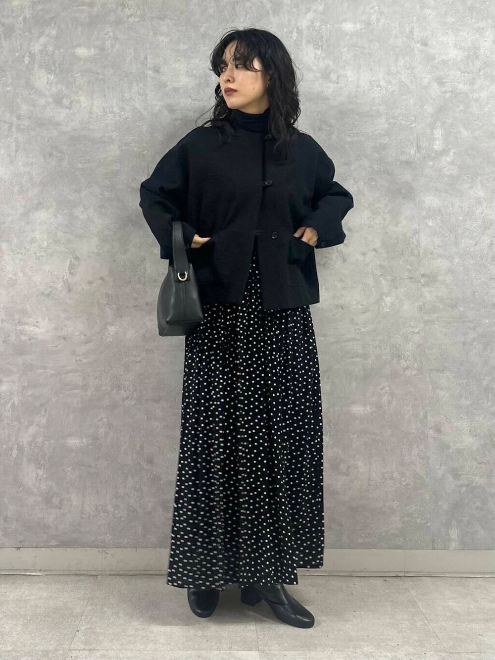ドットスカートながらあまり甘々にはなりすぎないため、シックなスタイリングからカジュアルまで幅広く合わせていただけます。