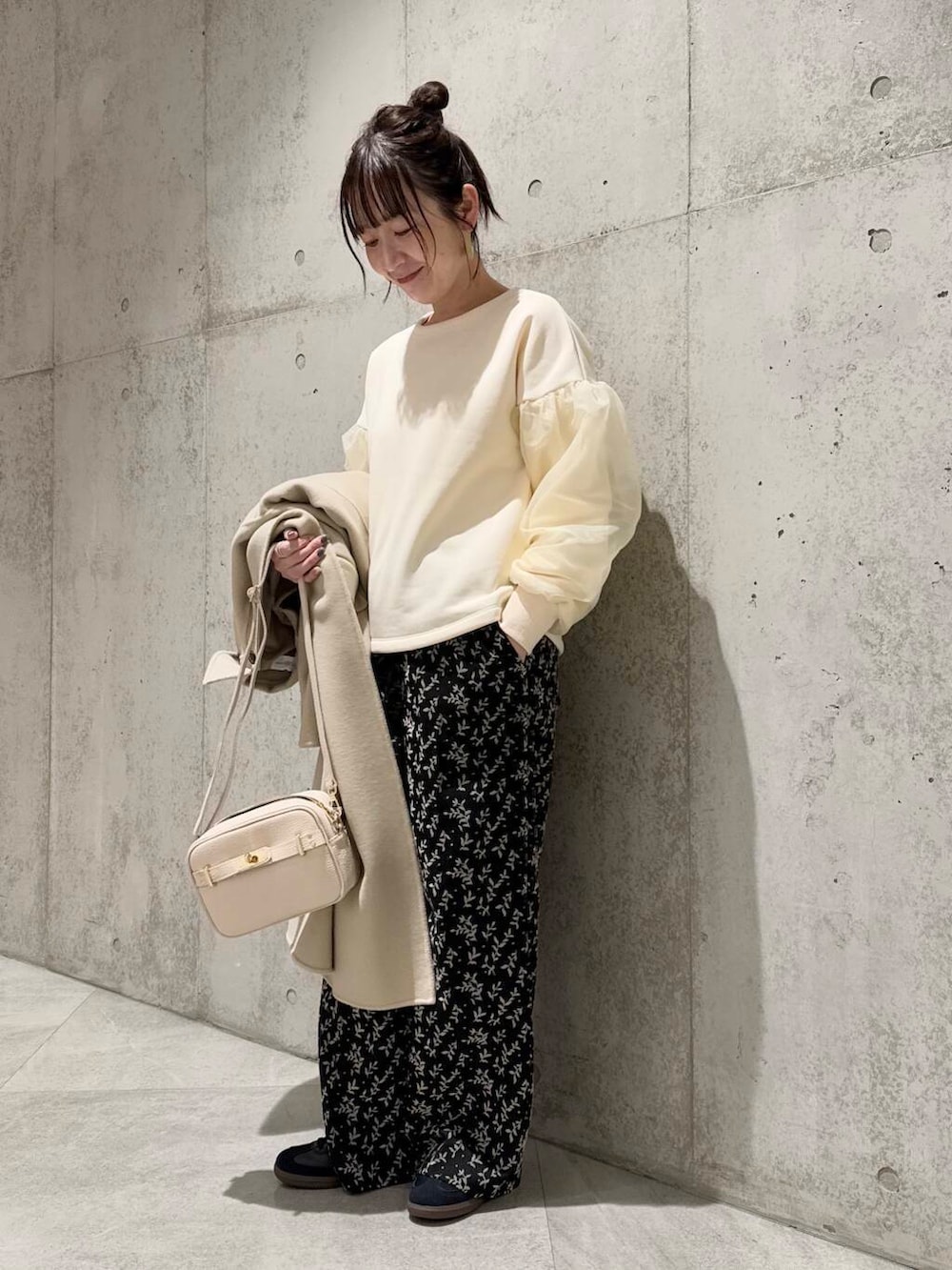 スウェットは、袖のシフォンがふんわりと女性らしいアイテムです。