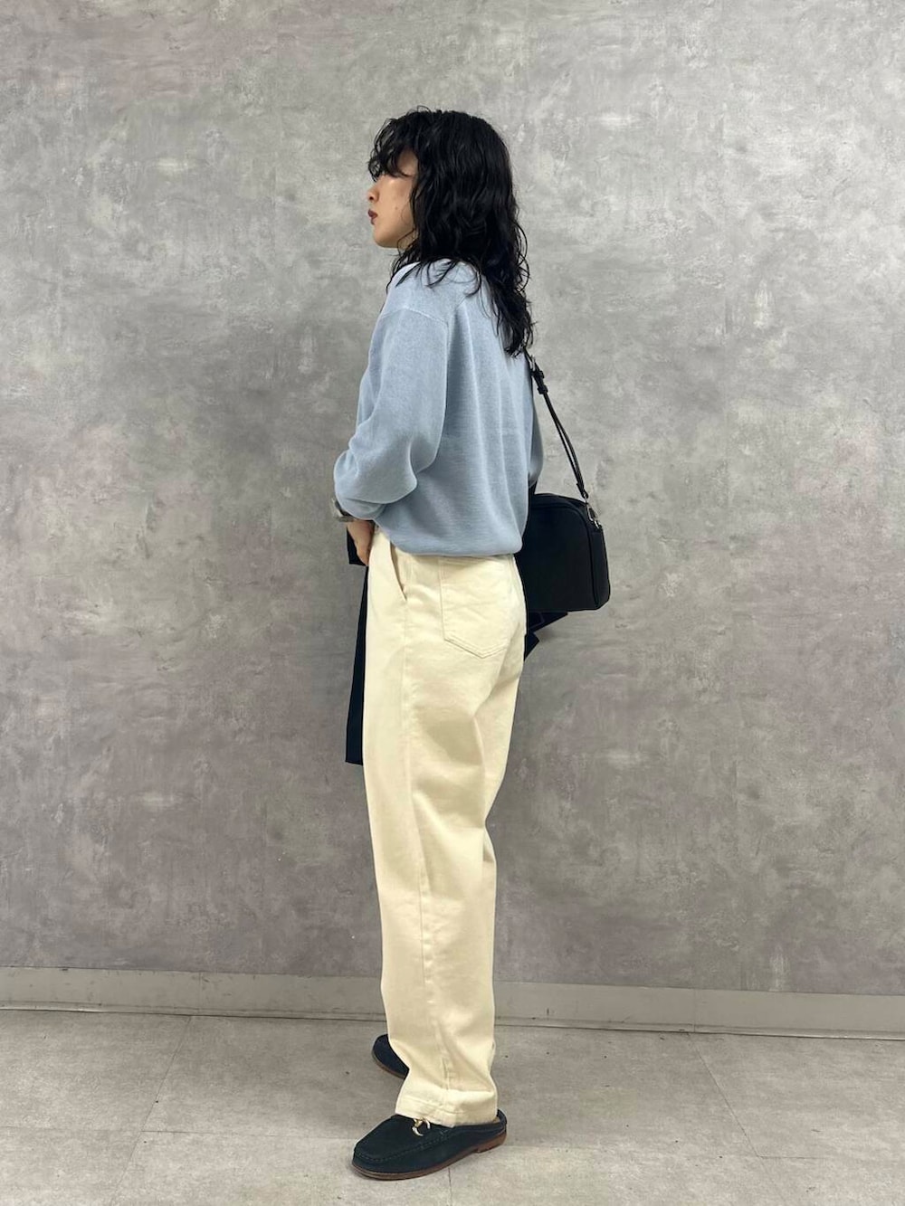 Vネック仕様ですが首元もそんなに開きすぎないので、だらしない印象にならず、少し動く日にもぱかぱか浮かない開き具合となっております。