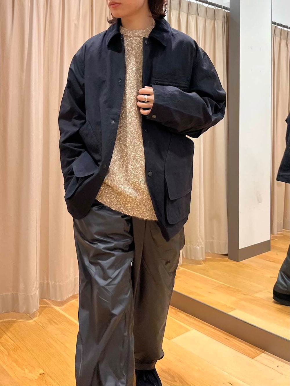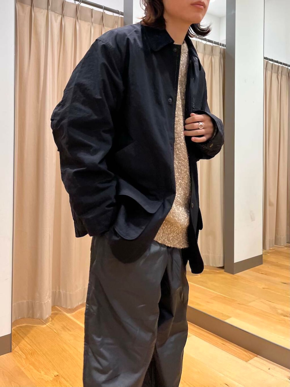 コートと言うだけあるオーバーサイジング、アーバンリサーチのMIXニットもお手のもの。