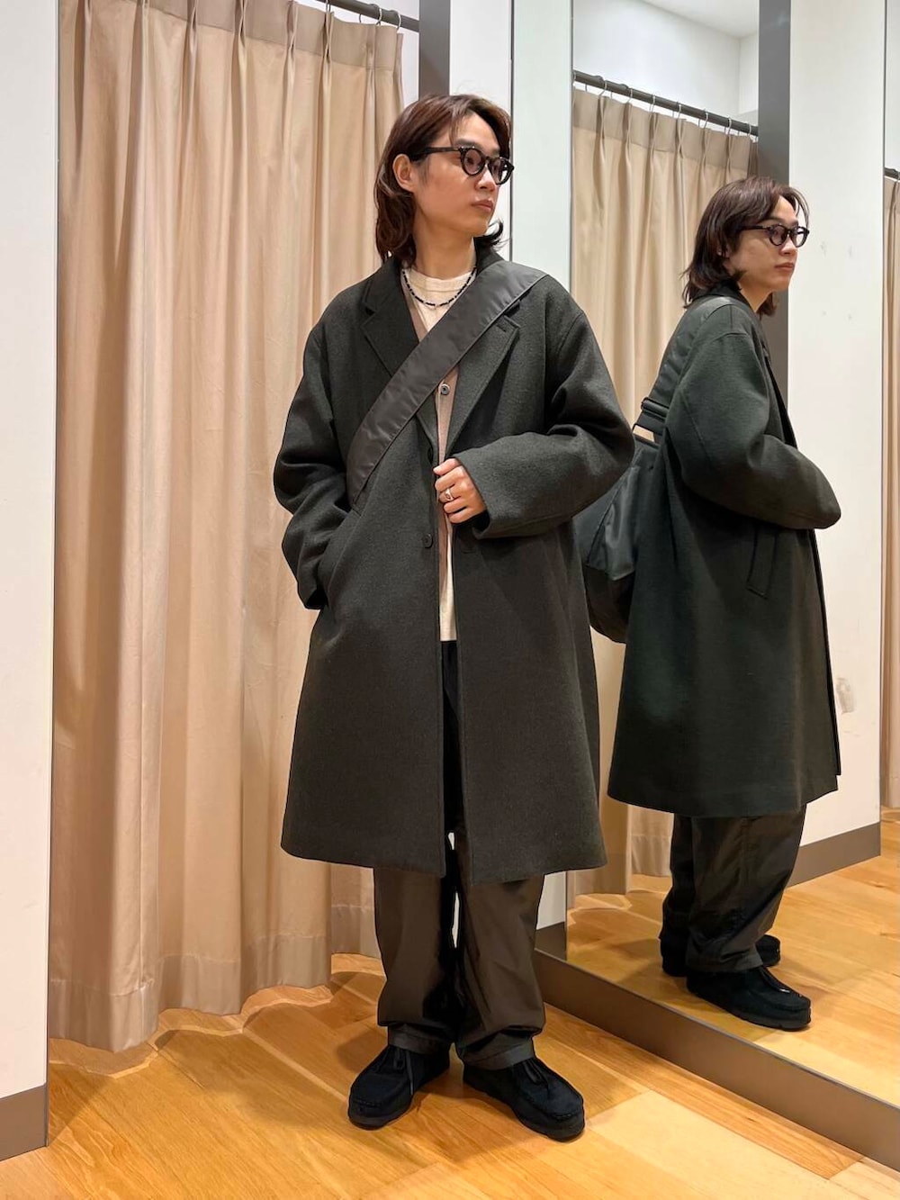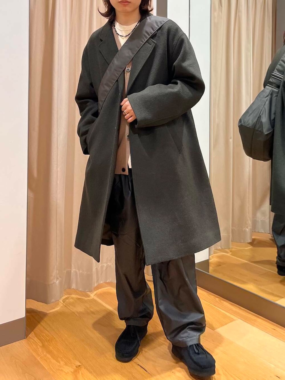 アーバンリサーチのオーバーチェスターに別注BROOXON、ウールとポリエステルの異素材合わせ。