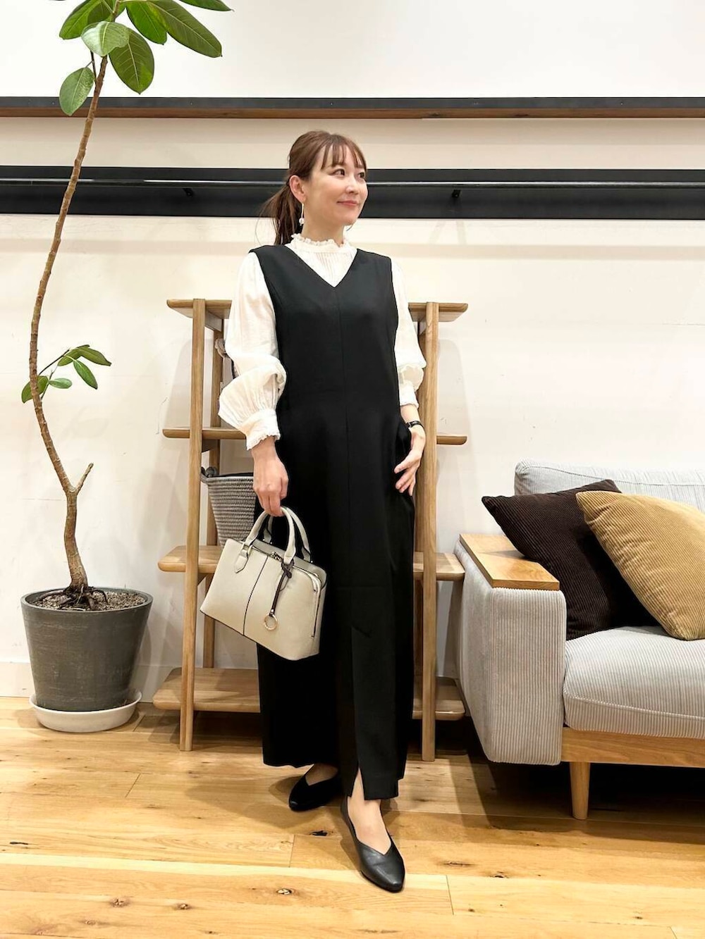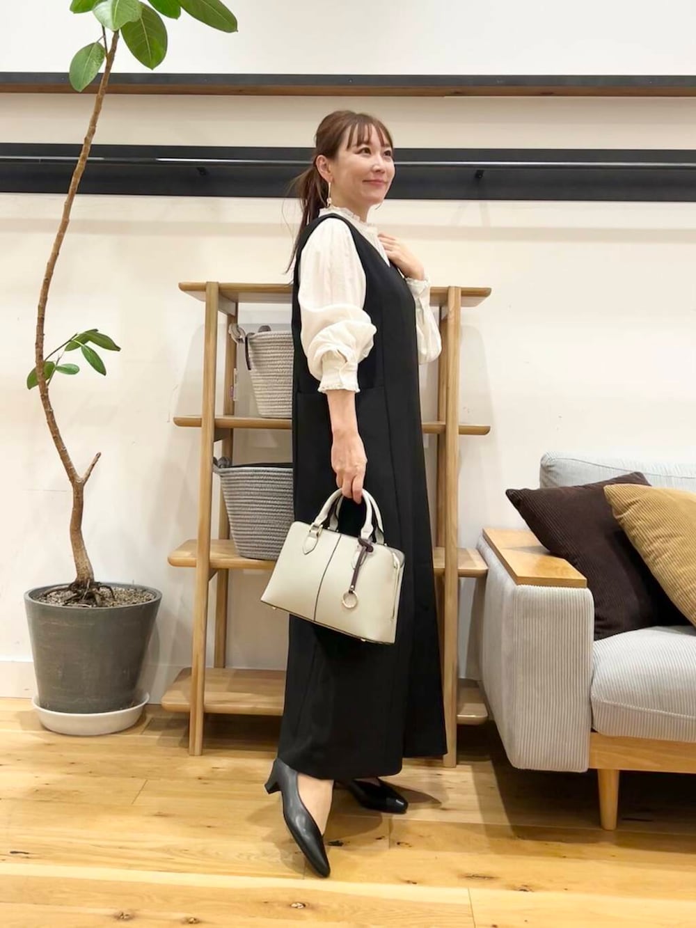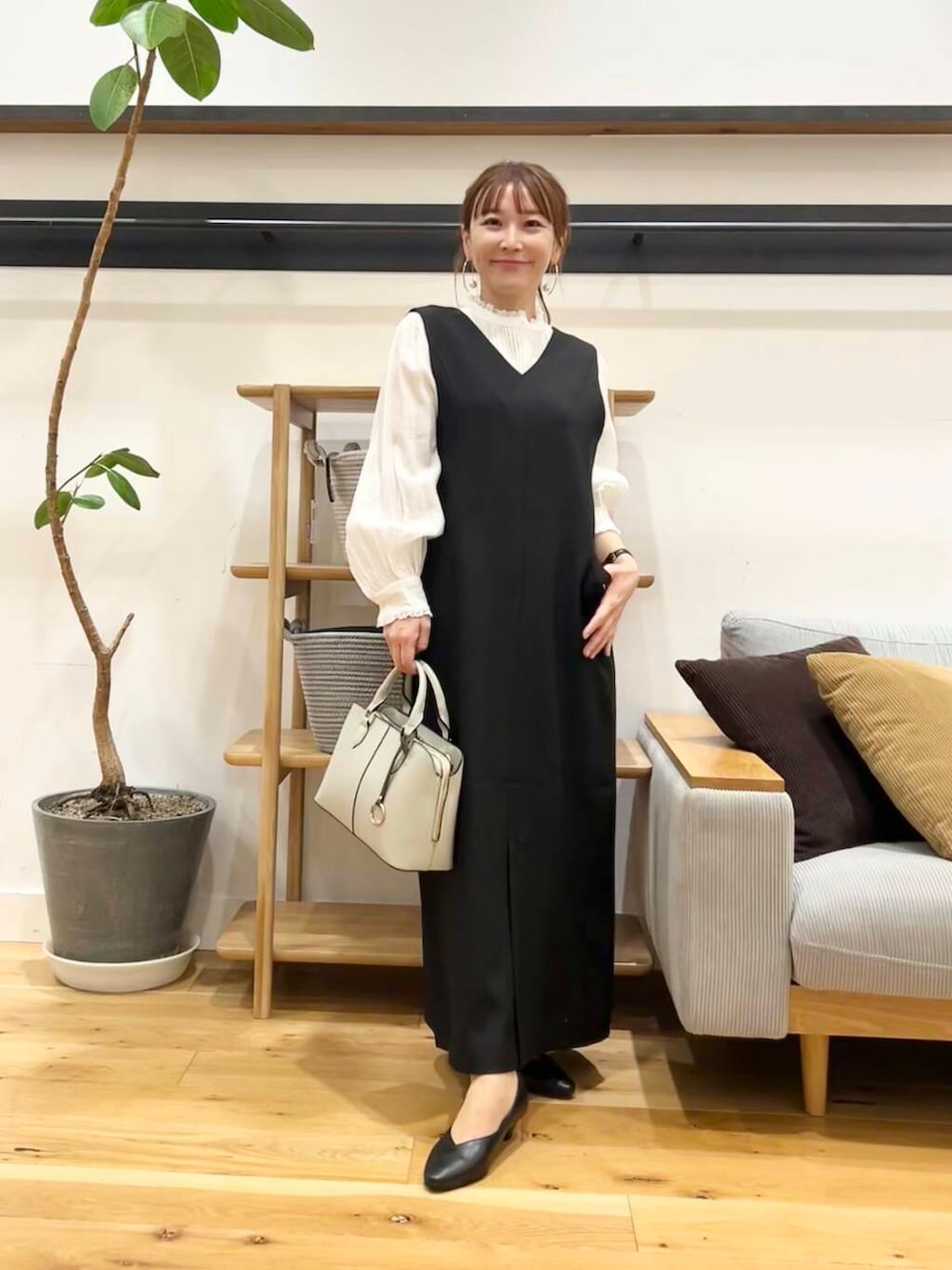 インナーにピンタックフリルスタンドカラーブラウスを合わせてます。