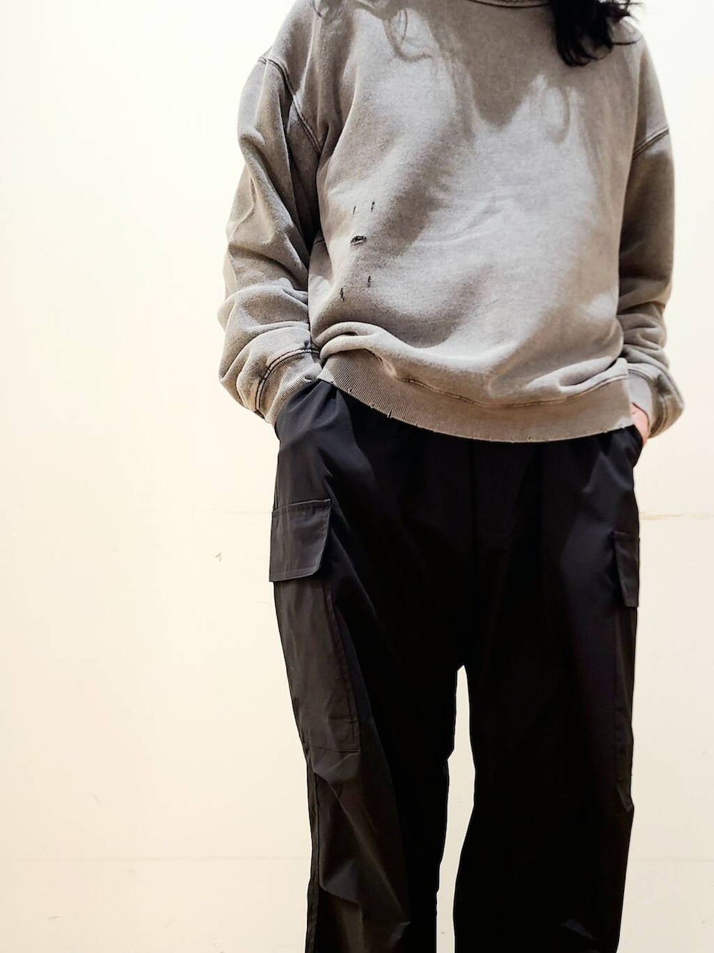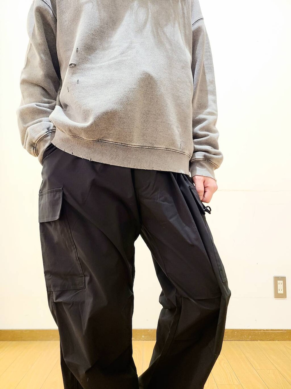 ウェストゴムでストレスフリーに着用できるカーゴパンツ。
