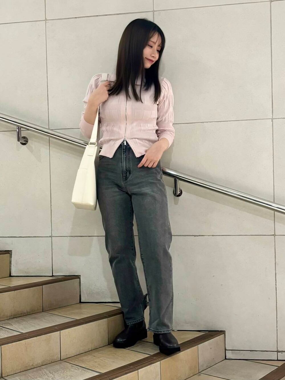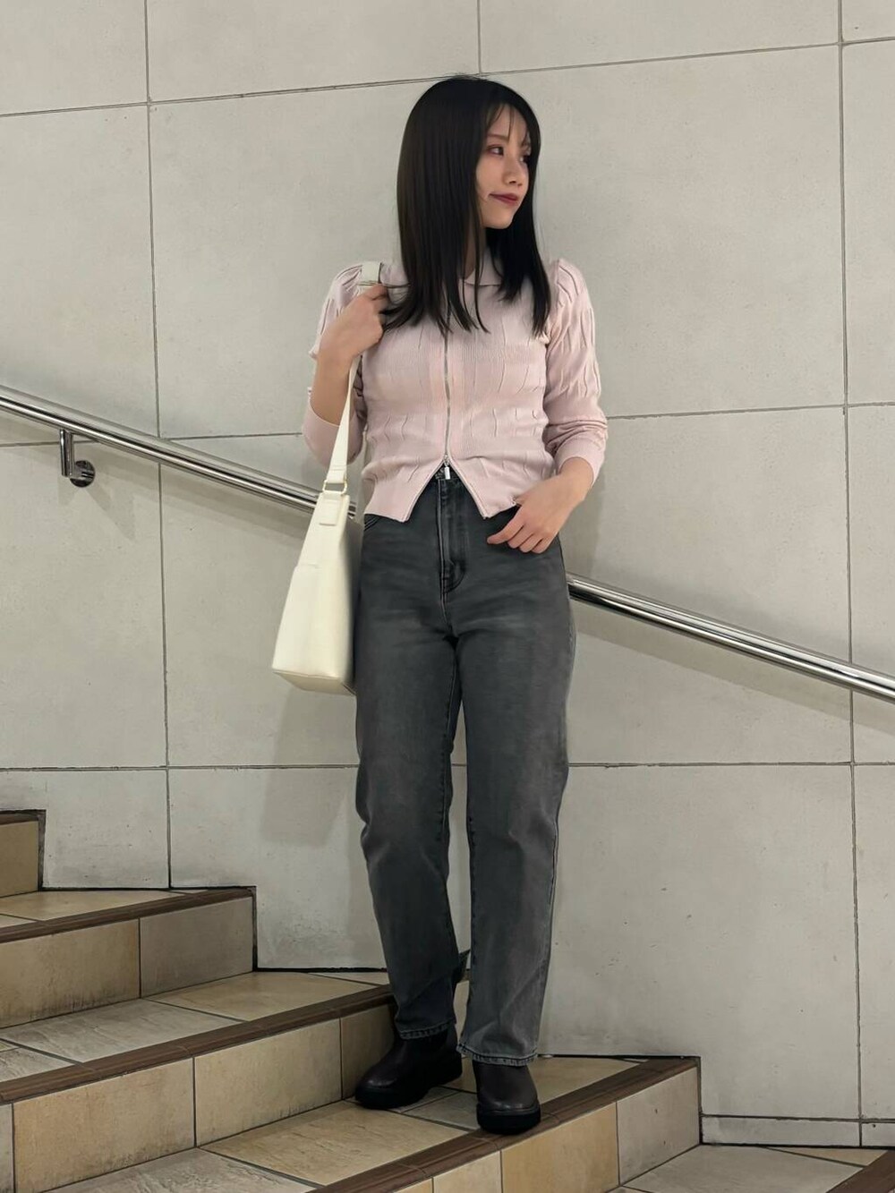 カーディガンは春色カラーで明るく可愛いデザインです!