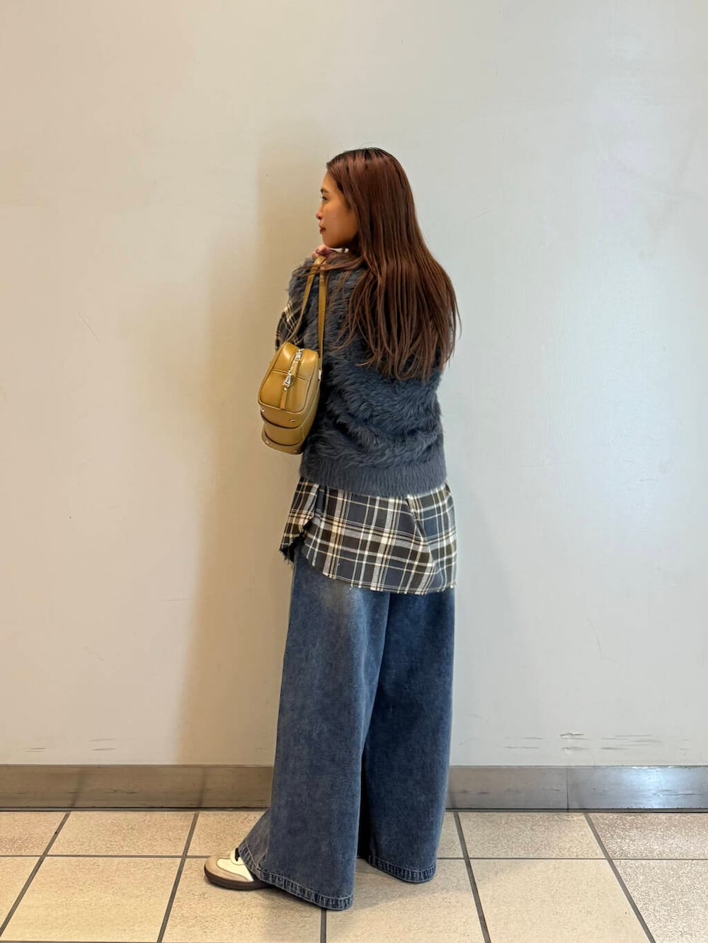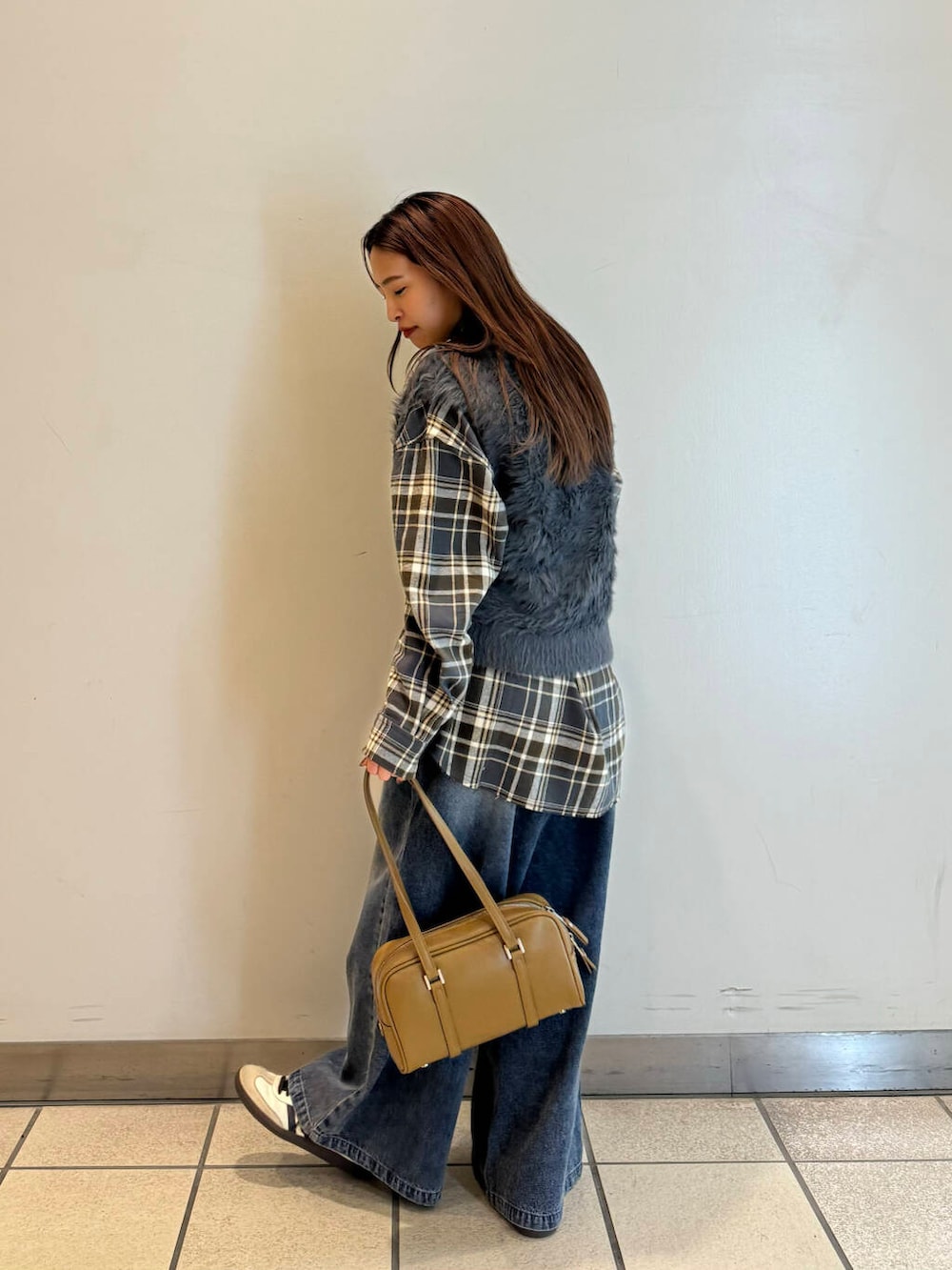 チェックシャツ×デニム