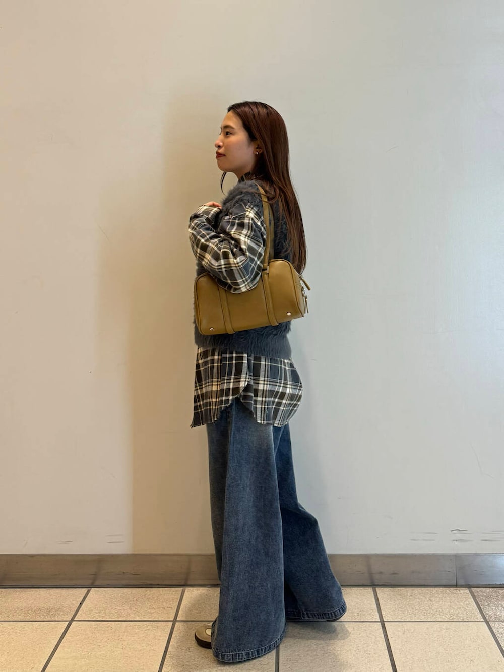 春っぽくチェックシャツと合わせてみました◎