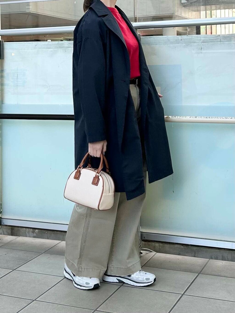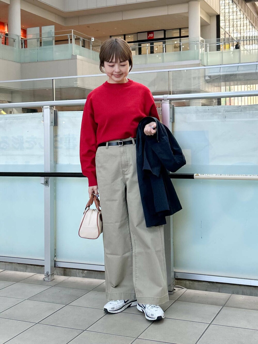 赤×ベージュの王道カラーでシンプルに合わせました。