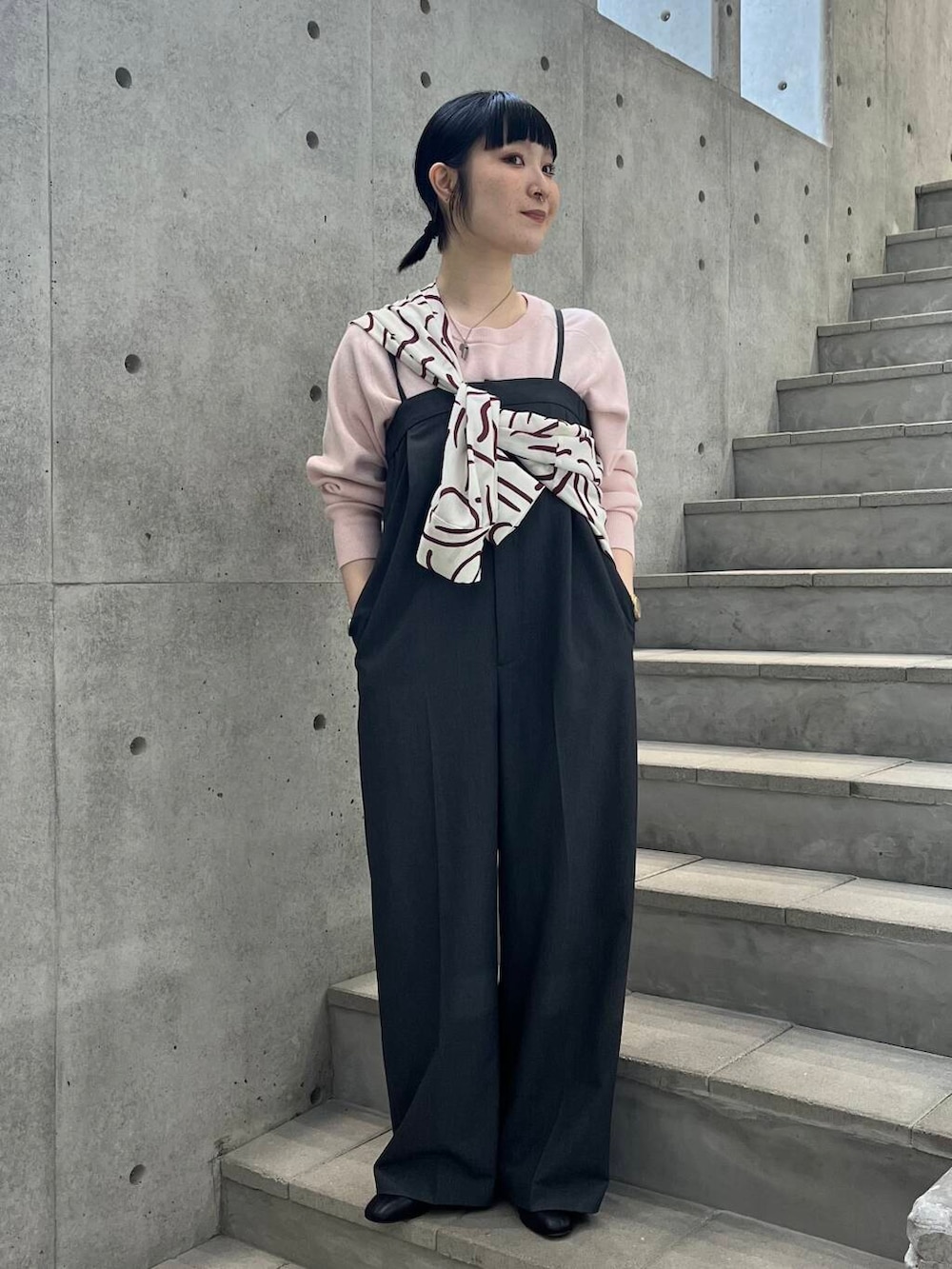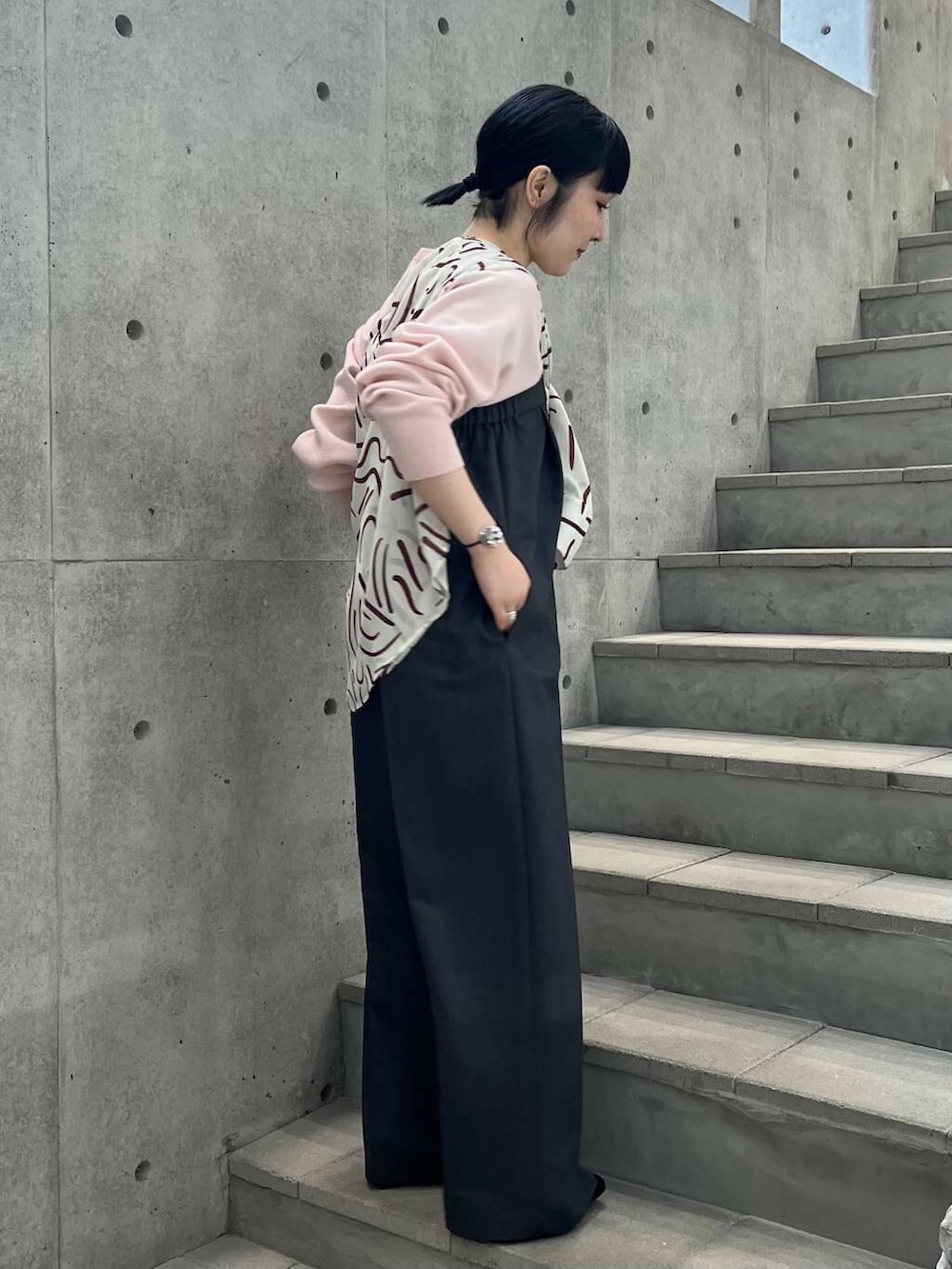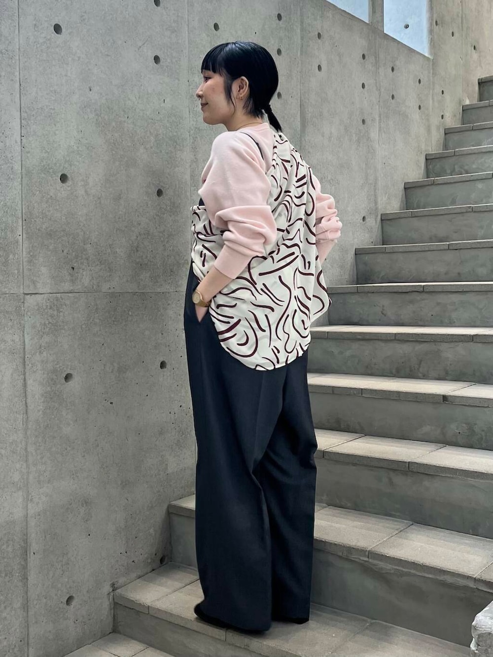 普段着ませんが爽やかなピンクのカシミヤコットンニットを入れたので春にきていただけるコーデになりました。