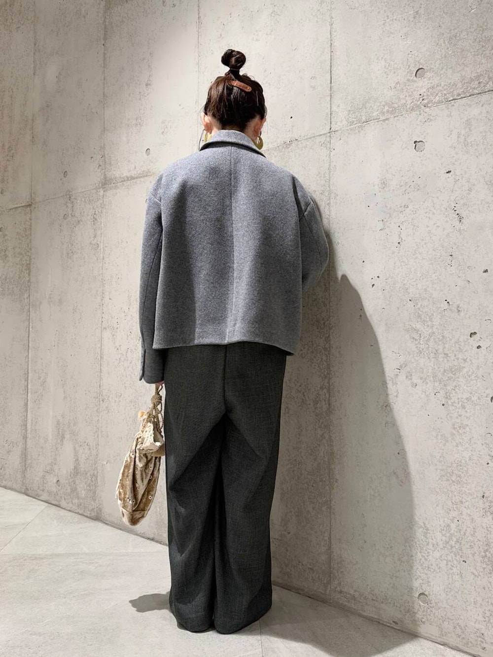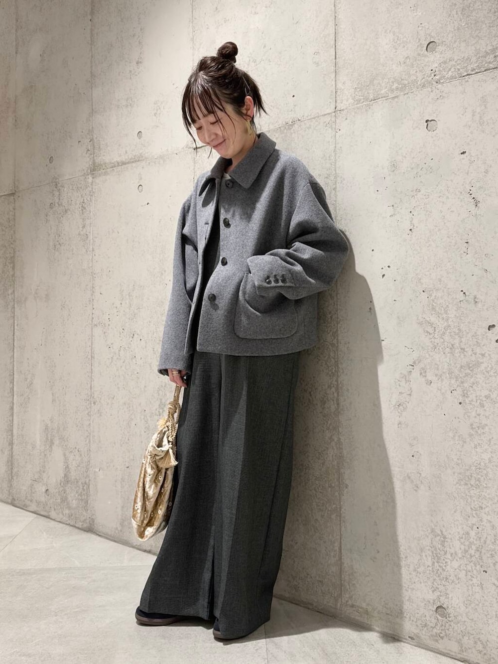 丸みのあるシルエットに、大きめのステンカラーが特徴のアイテム。