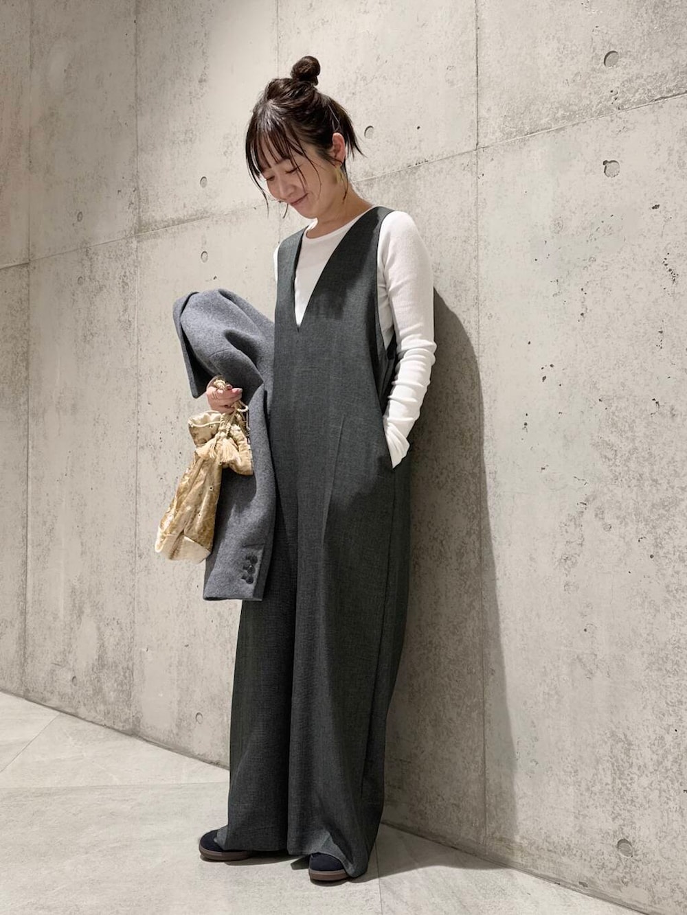 今回は、グレーのオールインワンと合わせて、ワントーンコーデにしてみました。