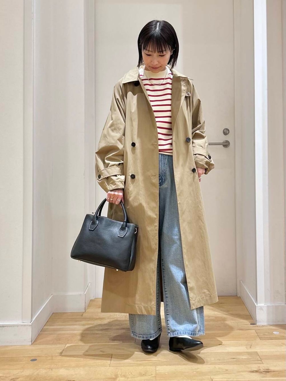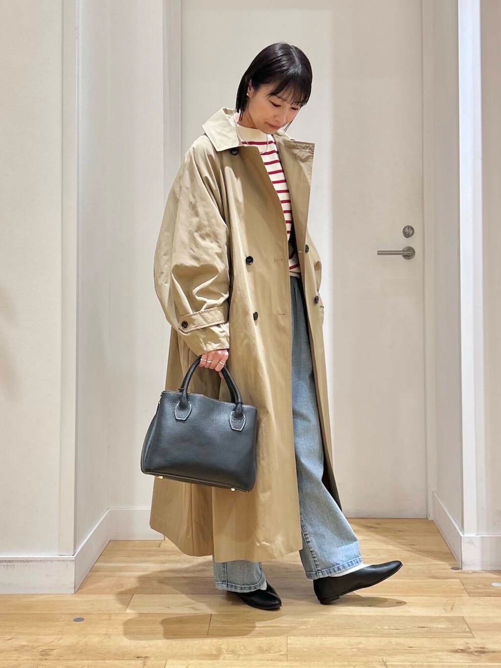 少し薄手の春アウターですが、中にインナーダウンなどを仕込めば寒い時期にも活躍してくれます!