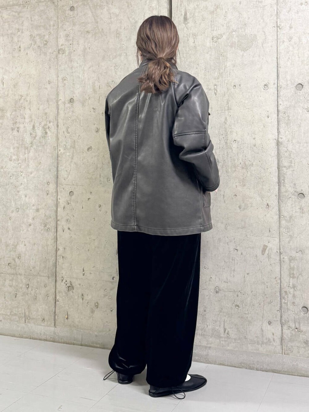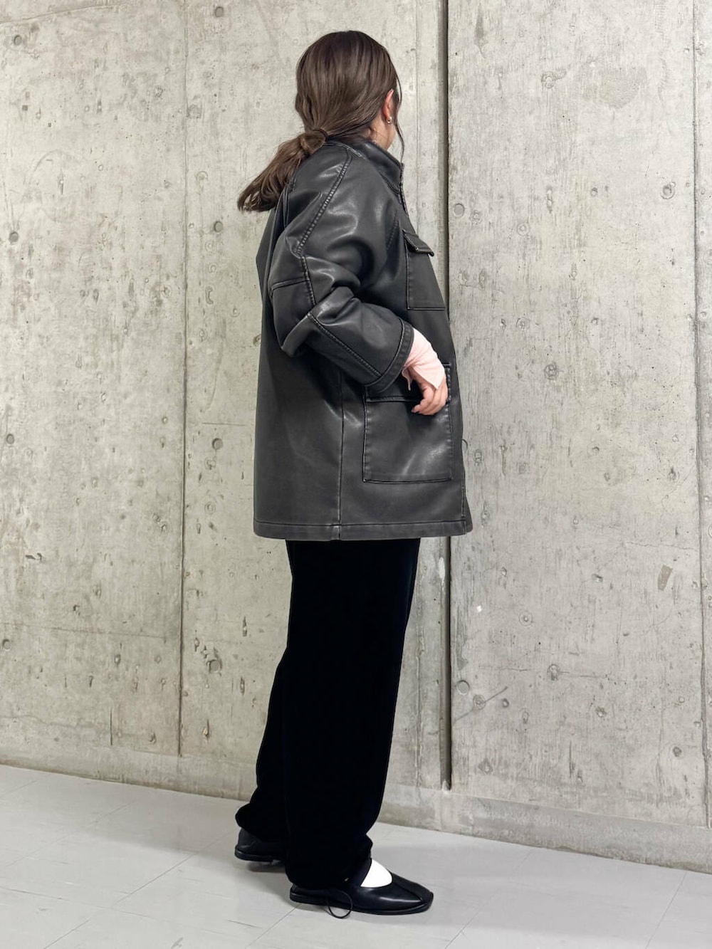 アウターはオーバーサイズで、お尻も隠れるミドル丈なので羽織りやすいです!