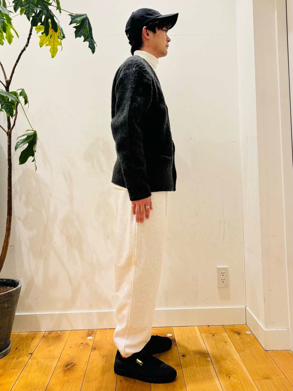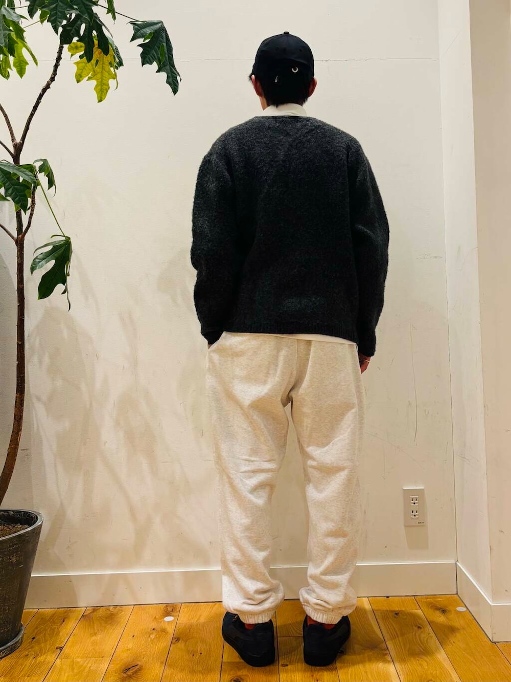 スウェットパンツのコーディネートが難しいと思いますがシャツやカーディガンなどきれいめのアイテムで合わせるのがオススメです。