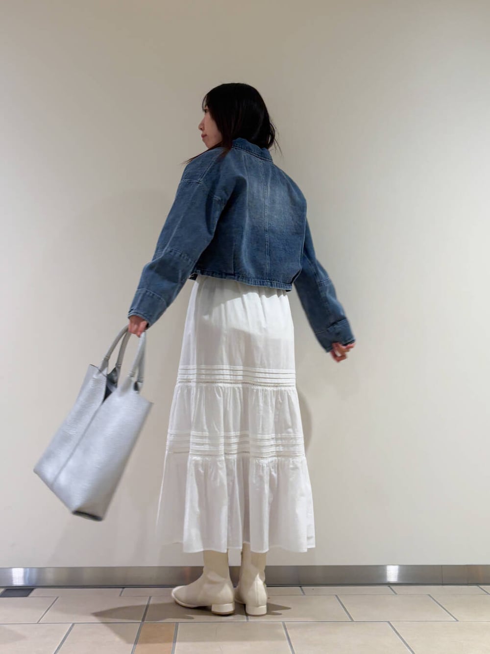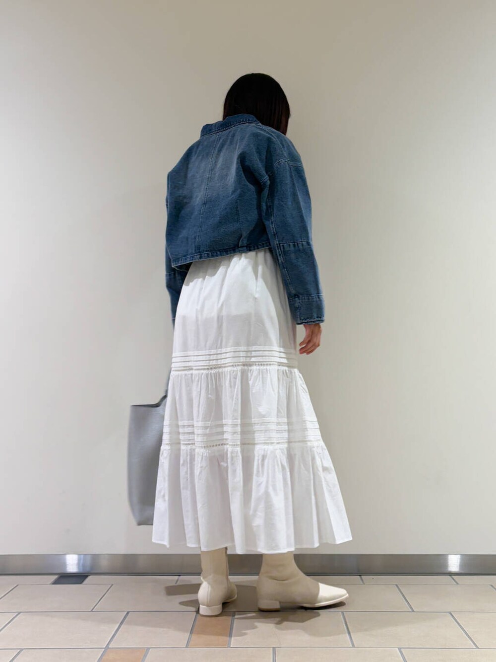 デニムジャケットは苦手意識があったのですが、こちらはウエスト位置までの丈がスタイルアップして見えてワンピースやスカートとの相性抜群です!!