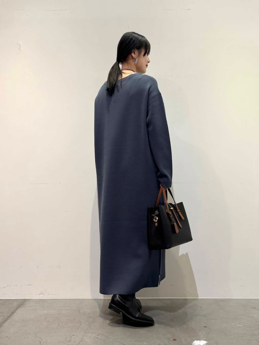ワンピースは編み目が細かくもこもこ見えないので春先にもおすすめです◎