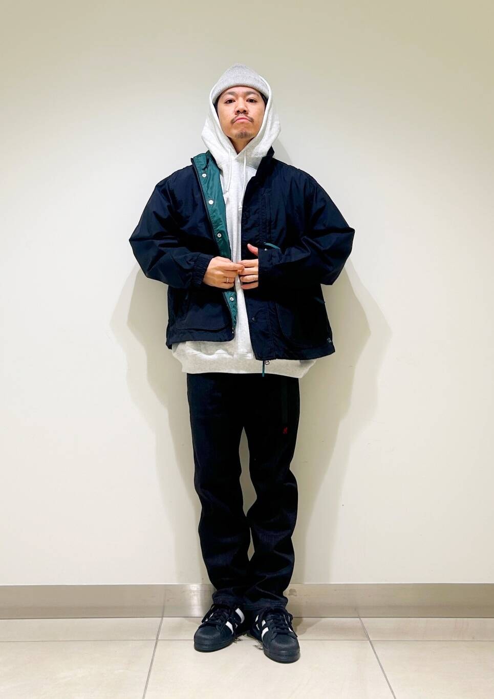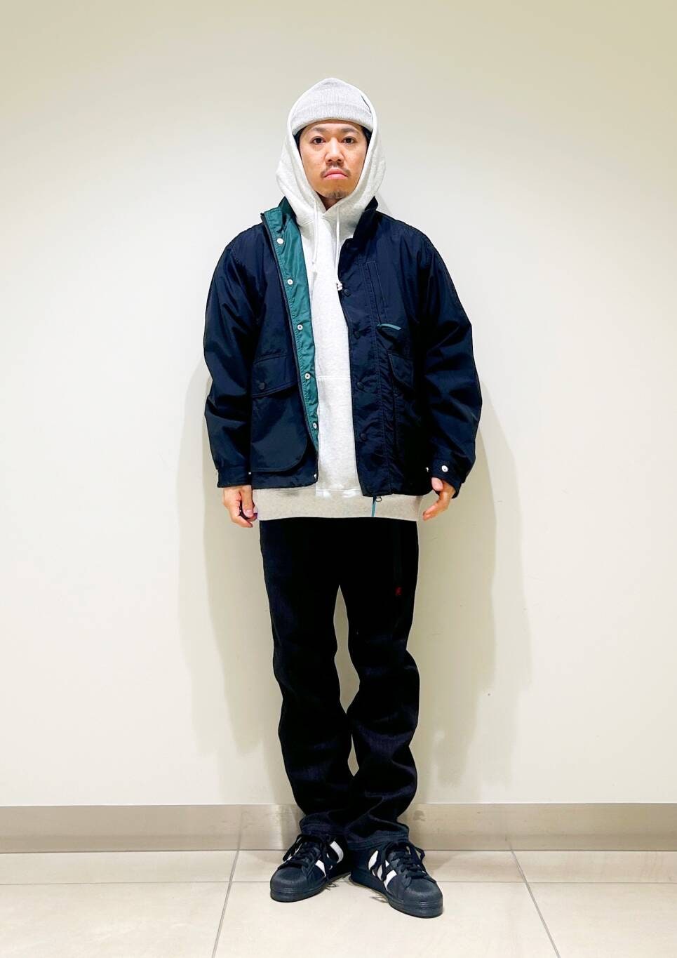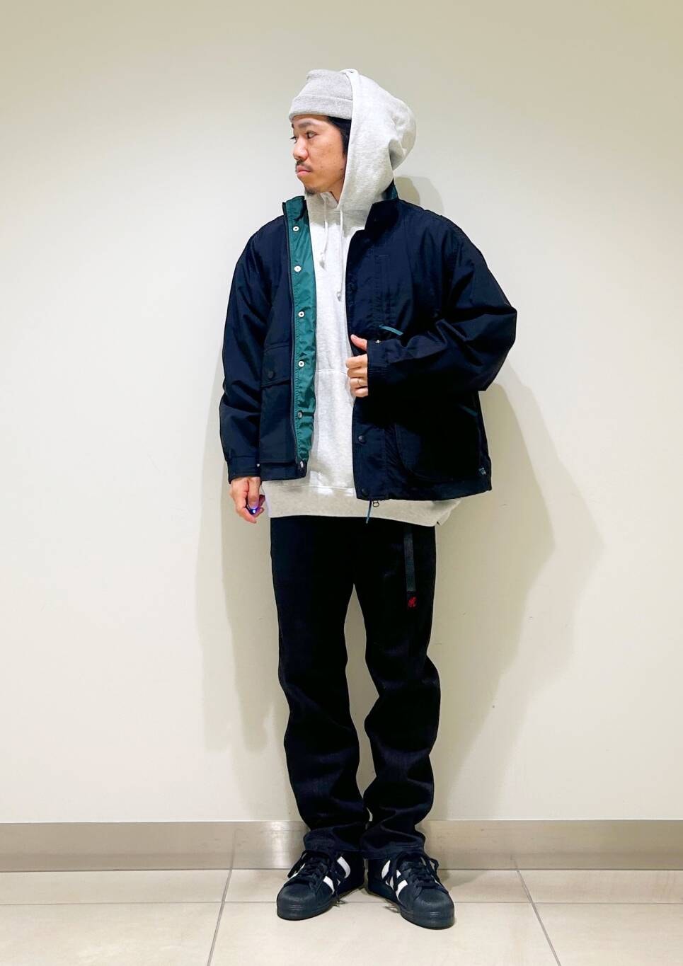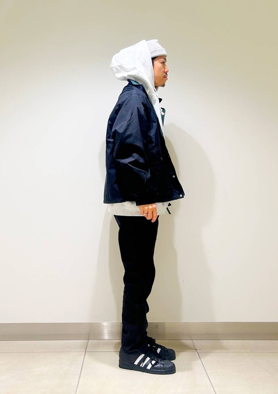 短めに設定された着丈はボトムを選ばずすっきりとしたシルエットが特徴です。