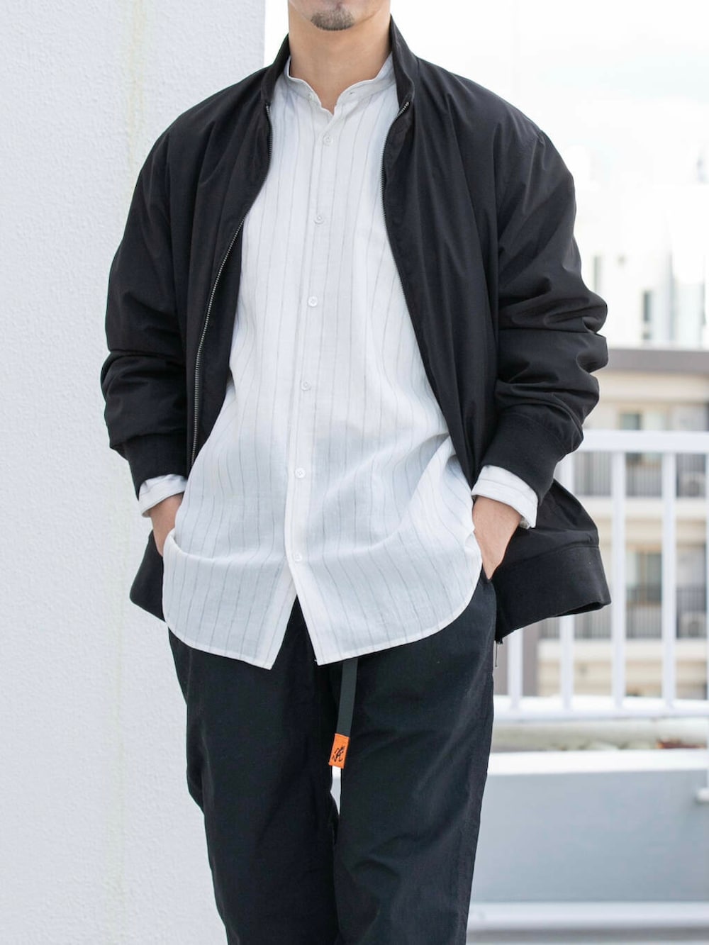 ●シャツ(Lサイズ)・・・細いストライプがさりげなくポイントになり、インでもアウトでも羽織でも長く活躍