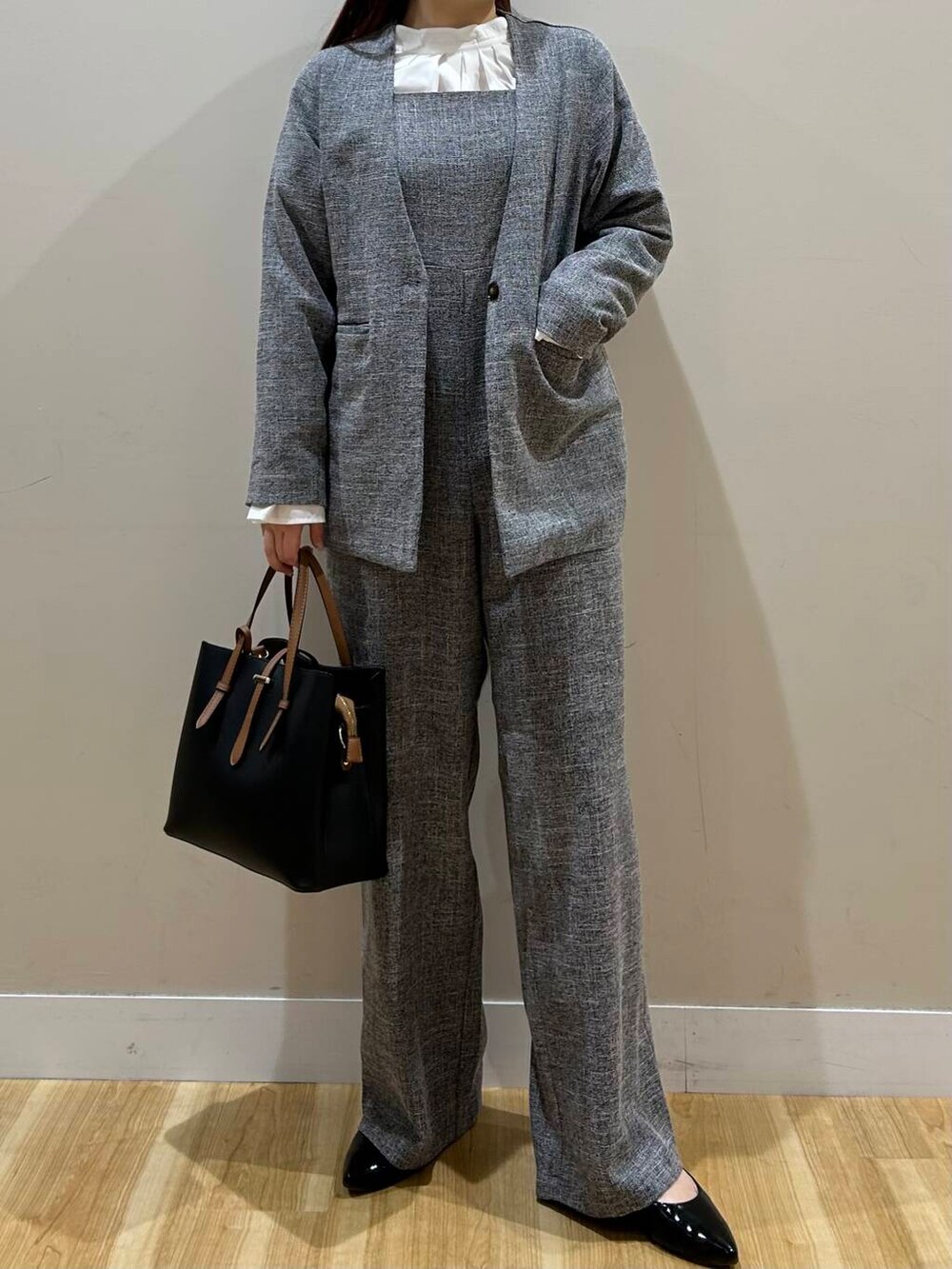 ただ、ジャケットもサロペットもシルエットがかっちりしすぎてないので普段使いもしやすいアイテムです◎