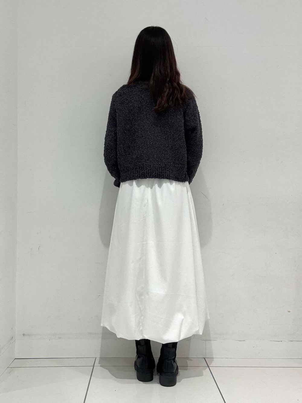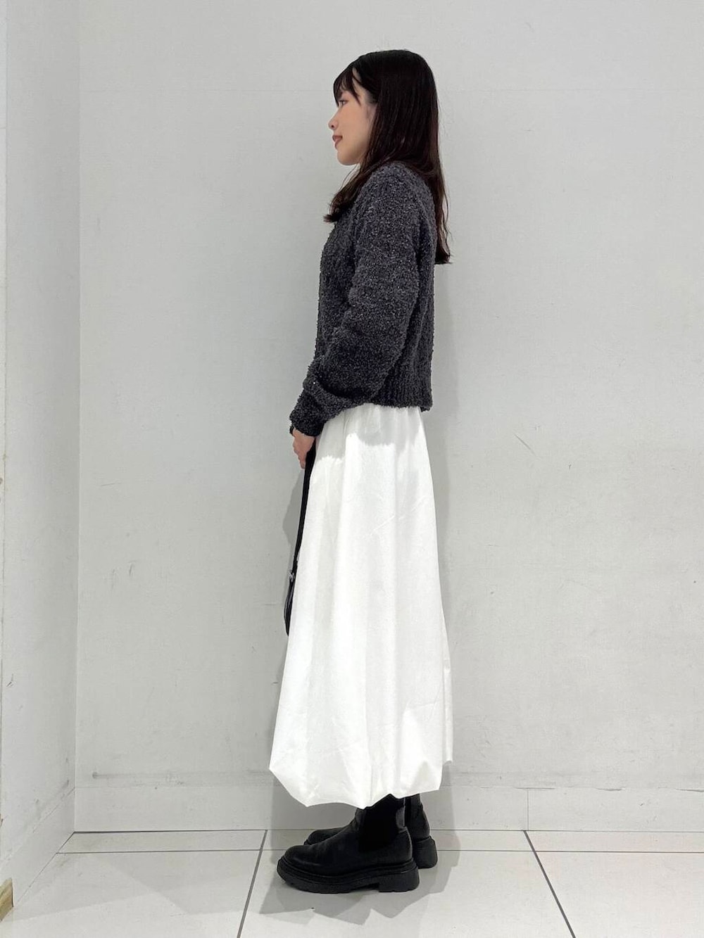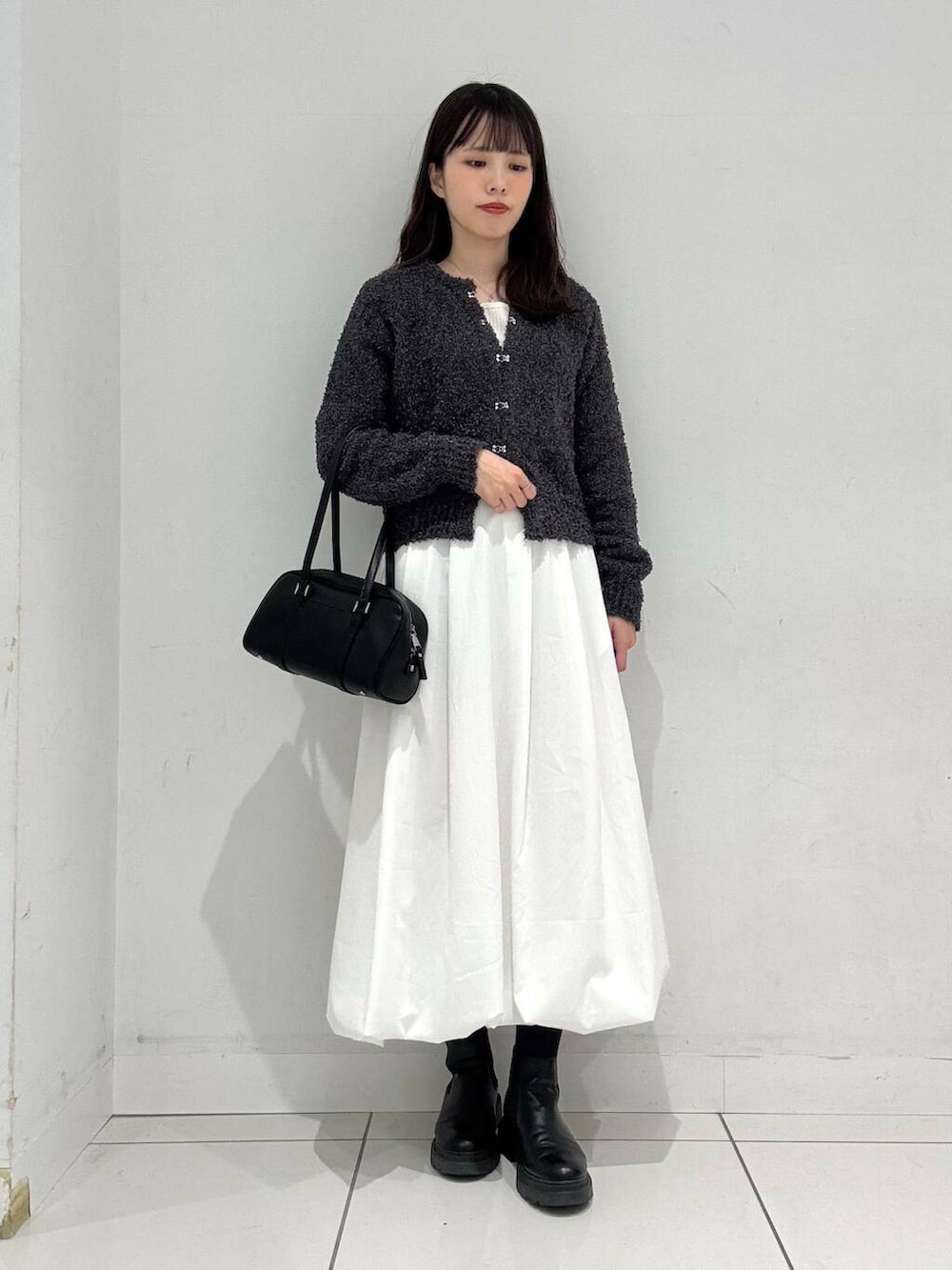 インナーとスカートを白でまとめても、カーディガンや小物を黒・グレーで統一することで甘くなりすぎず着用いただけます🙌🏻