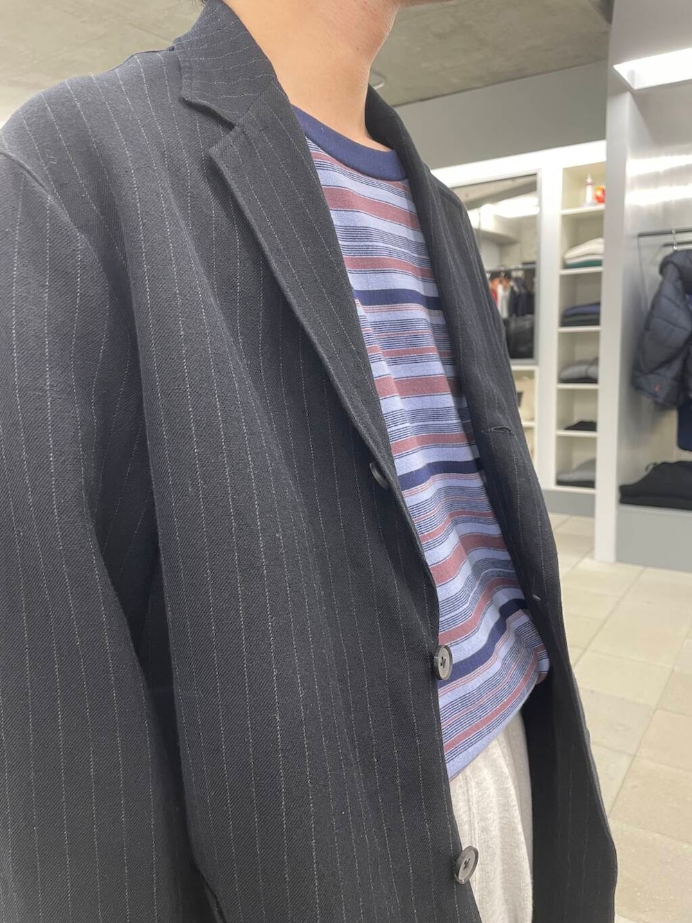 ジャケットがストライプでインナーがボーダーっていうかなり暴力的な合わせだと思いますが、そんな固定概念ぶっ壊してやりましょう。