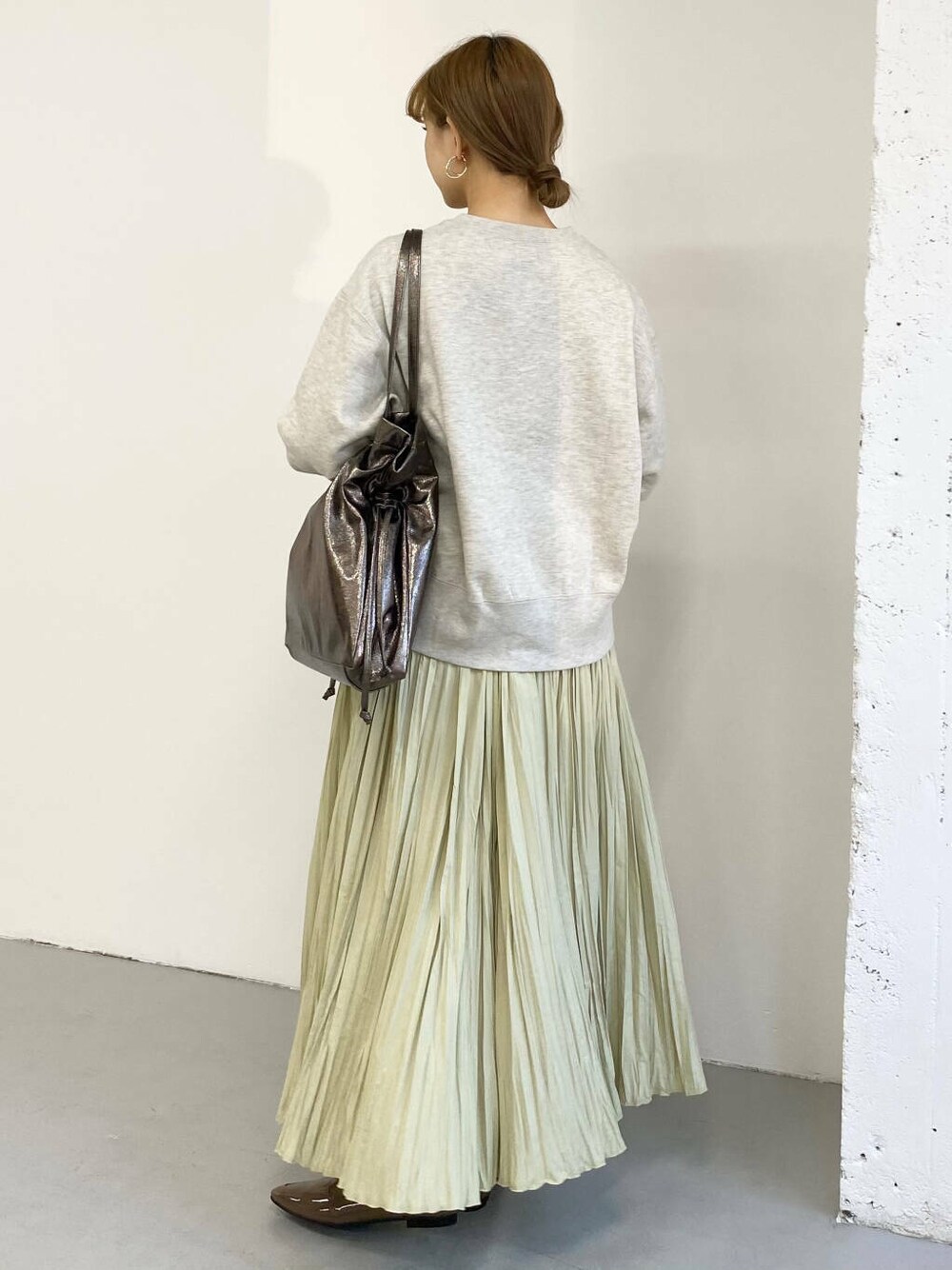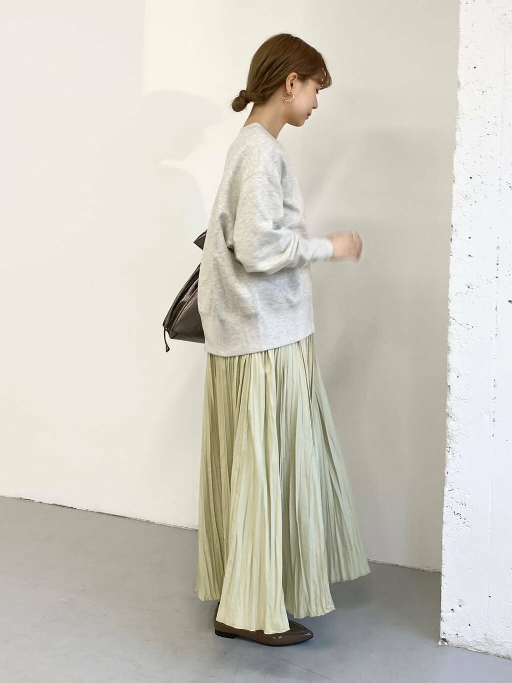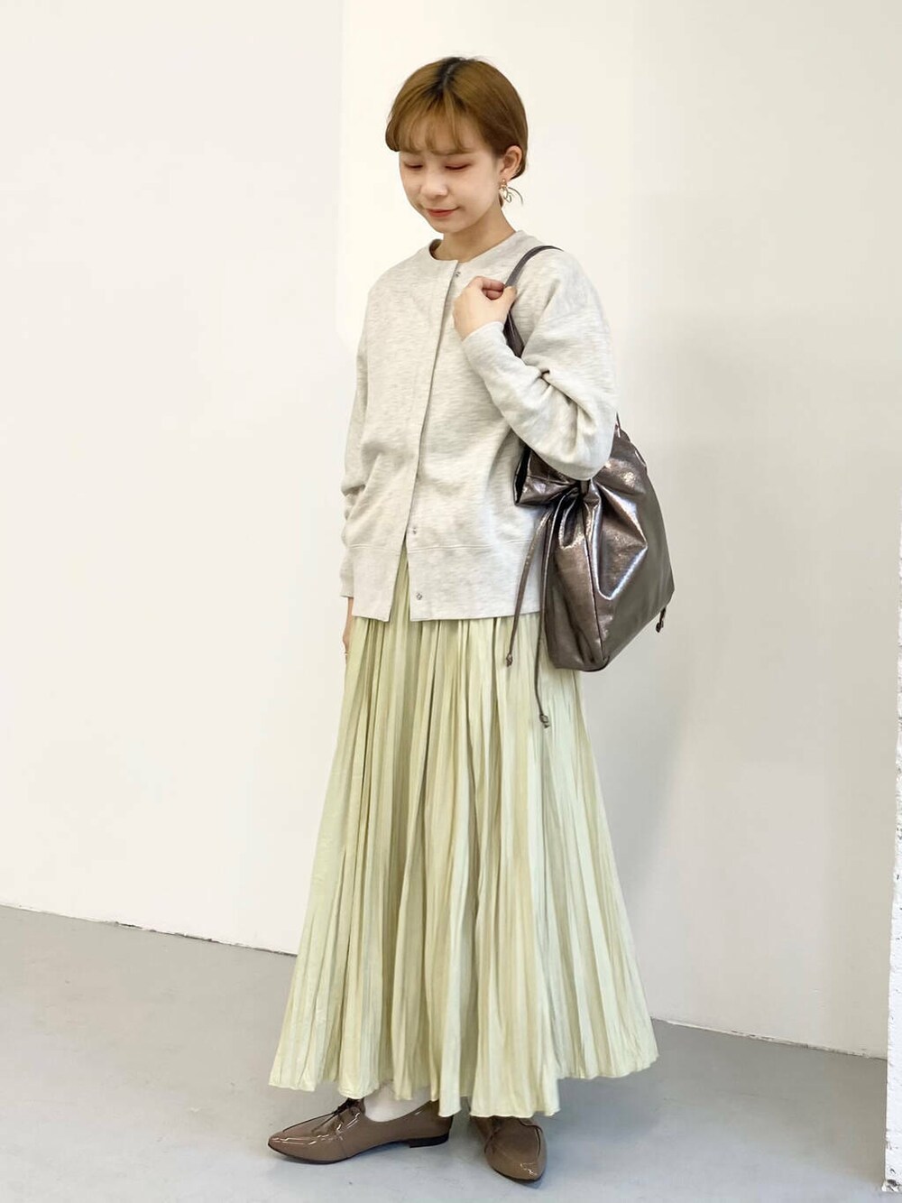 スカートは細かいランダムプリーツが軽やかな雰囲気。