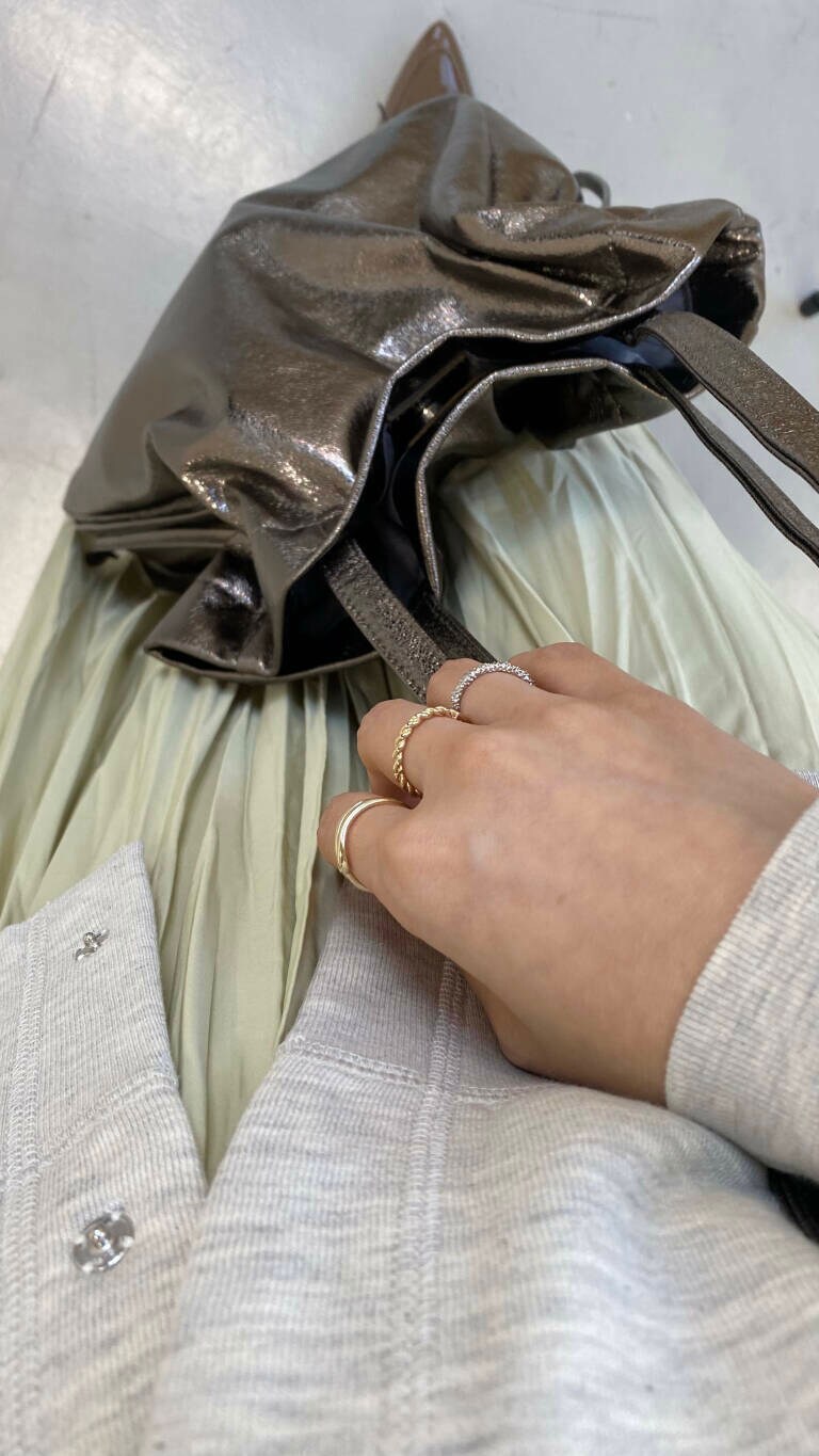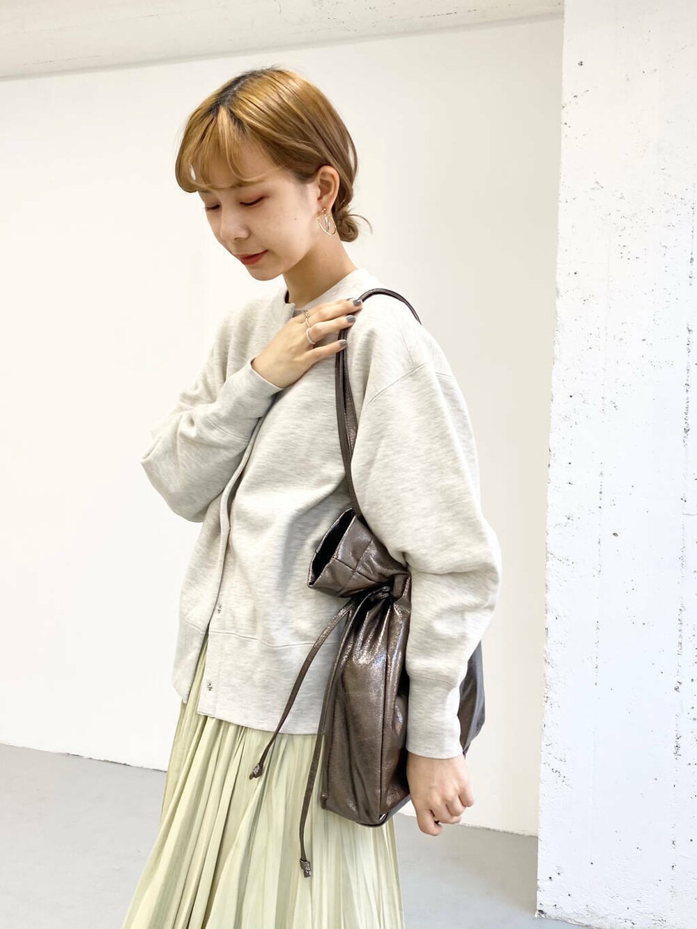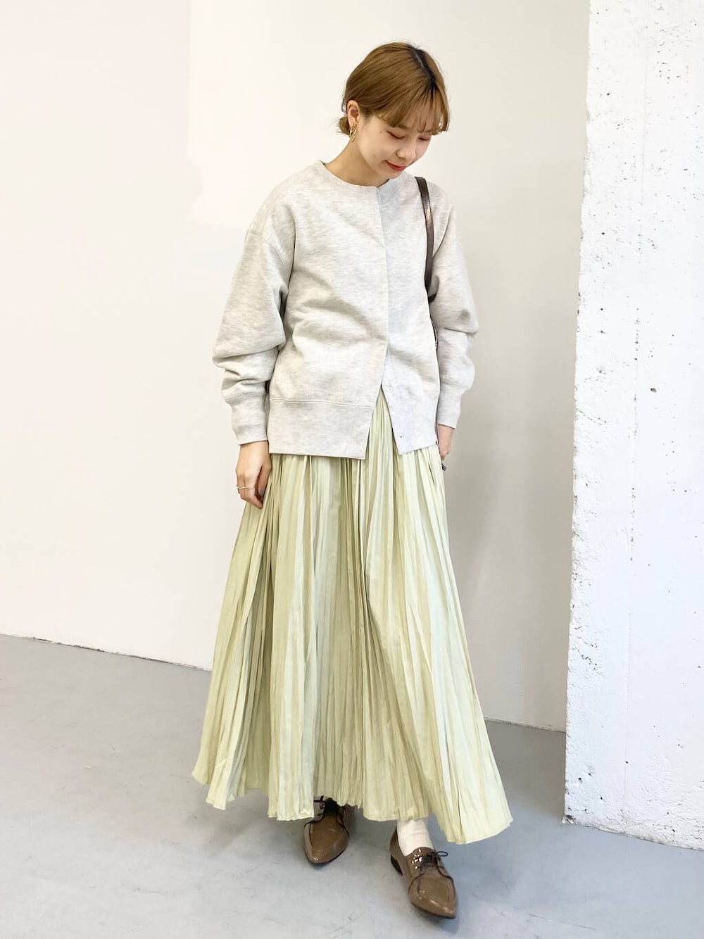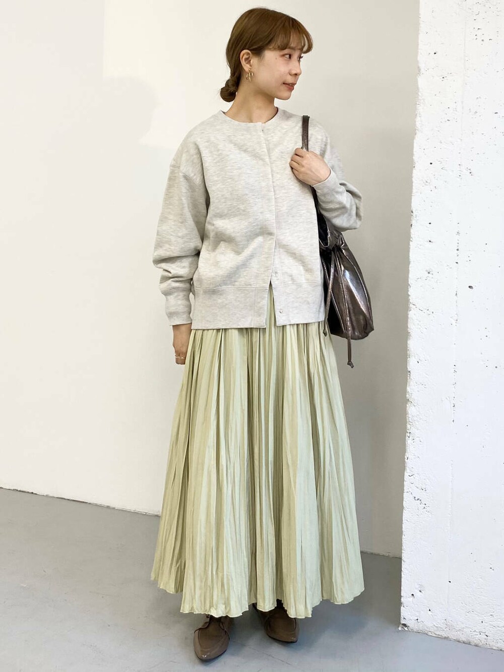 スカートは細かいランダムプリーツが軽やかな雰囲気。