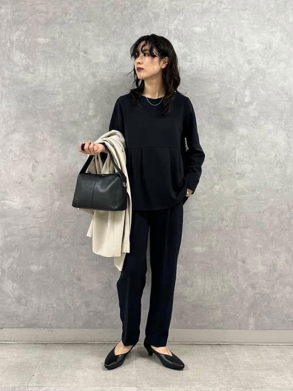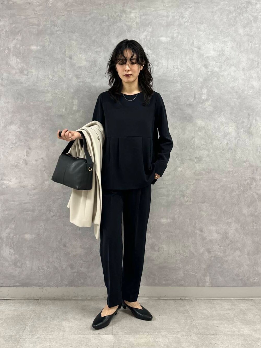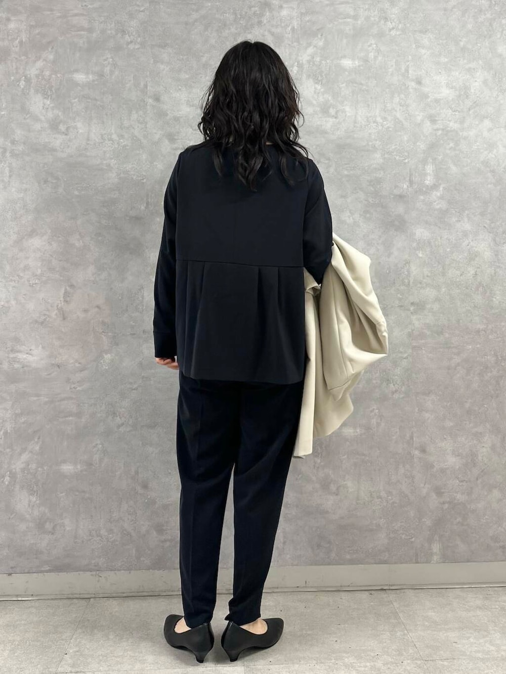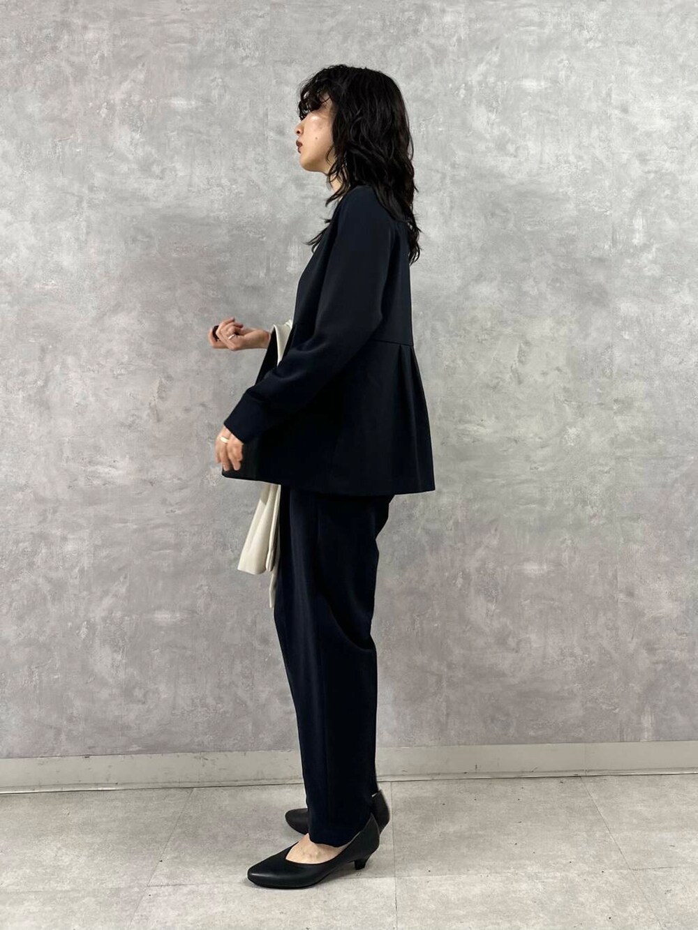 ペプラムデザインのセットアップはサイズSで袖丈のも着丈もどジャストの丈感でした。肩周りもどジャストです。