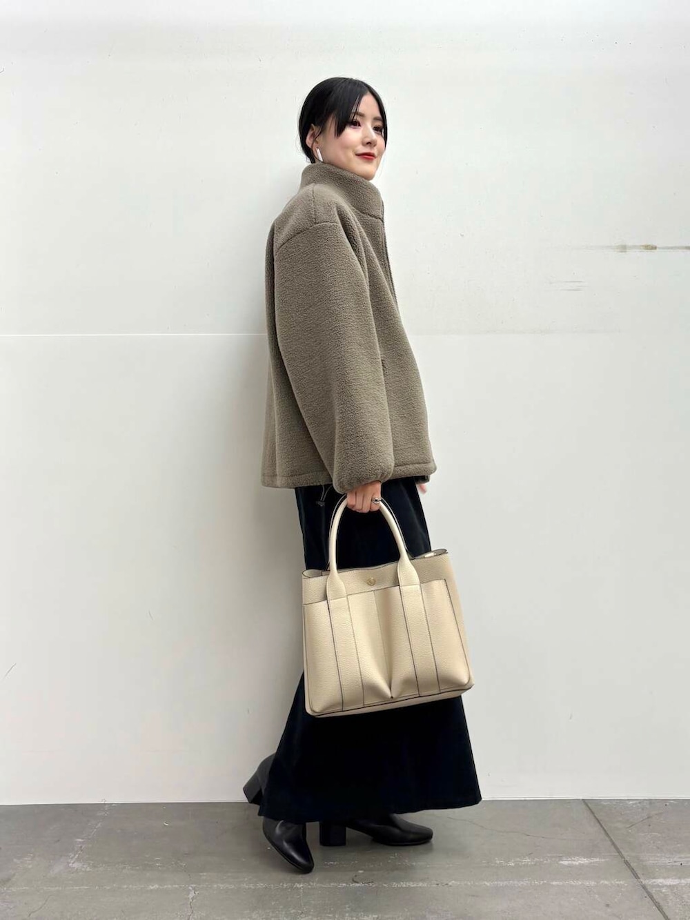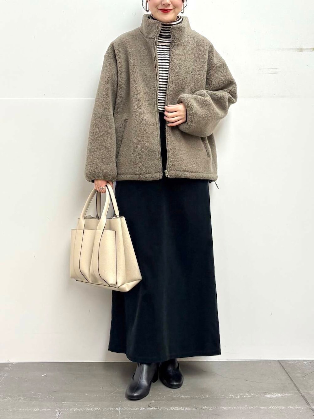 アウターは程よいスタンドカラーでカジュアルになりすぎないデザインです◎