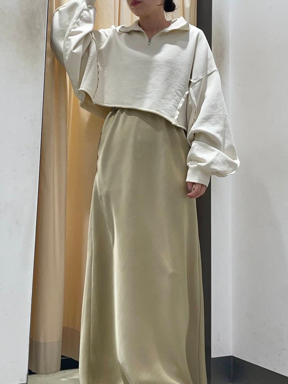 サテンスカートと合わせてカジュアルすぎず大人コーデの完成です!