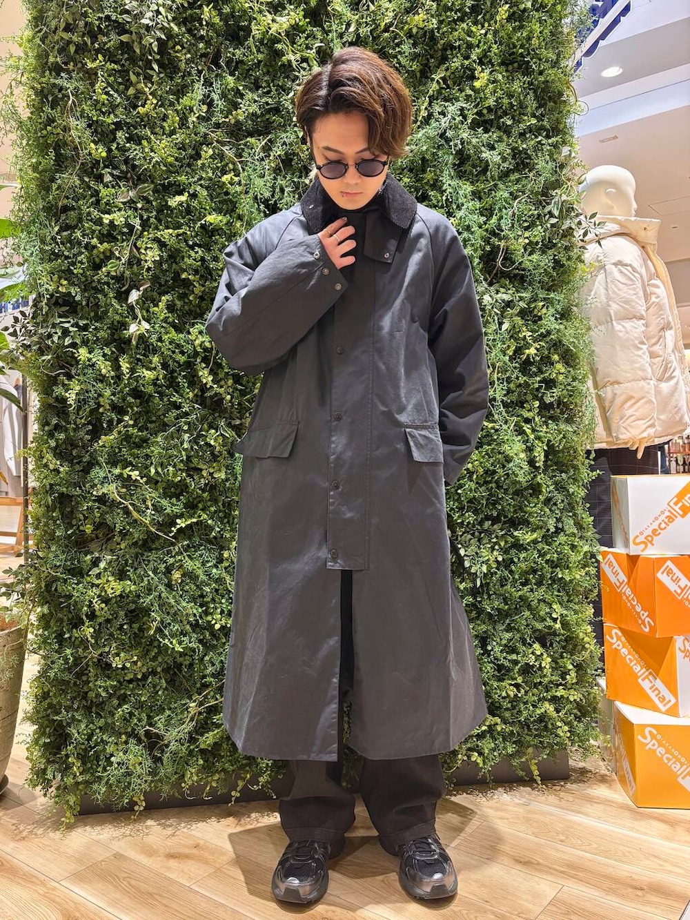 BARBOURの中でも着丈が1番長いバーレーをメインにキレイめ意識のスタイリング!