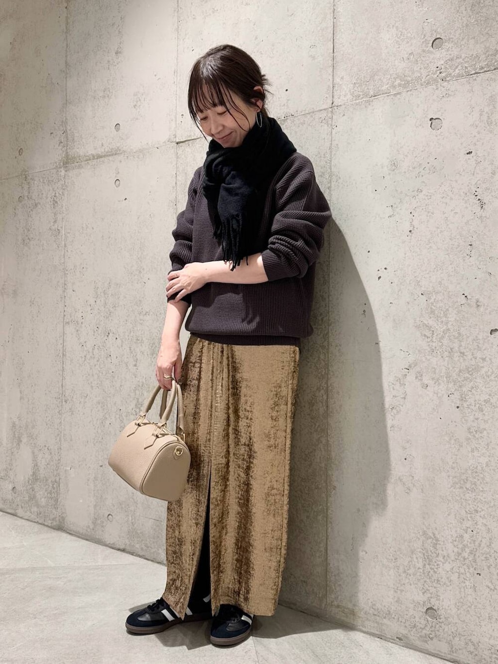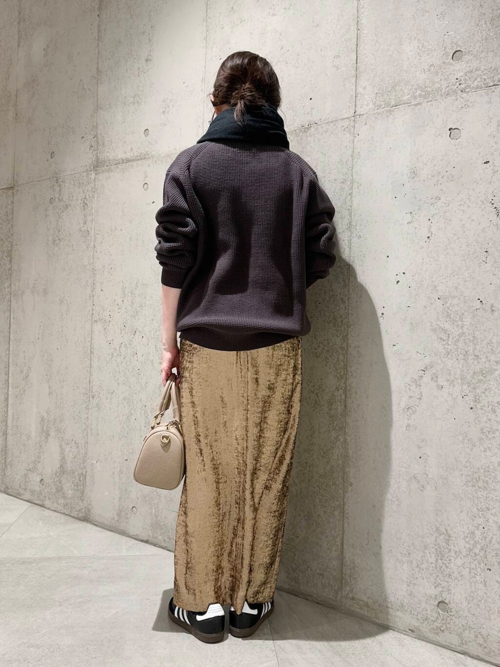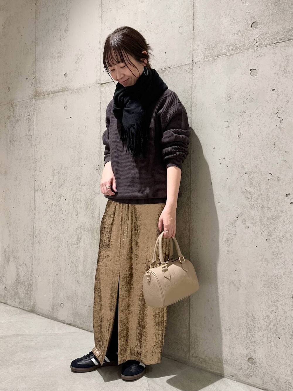 今回は、グリッターが目を惹くロングスカートを合わせました。