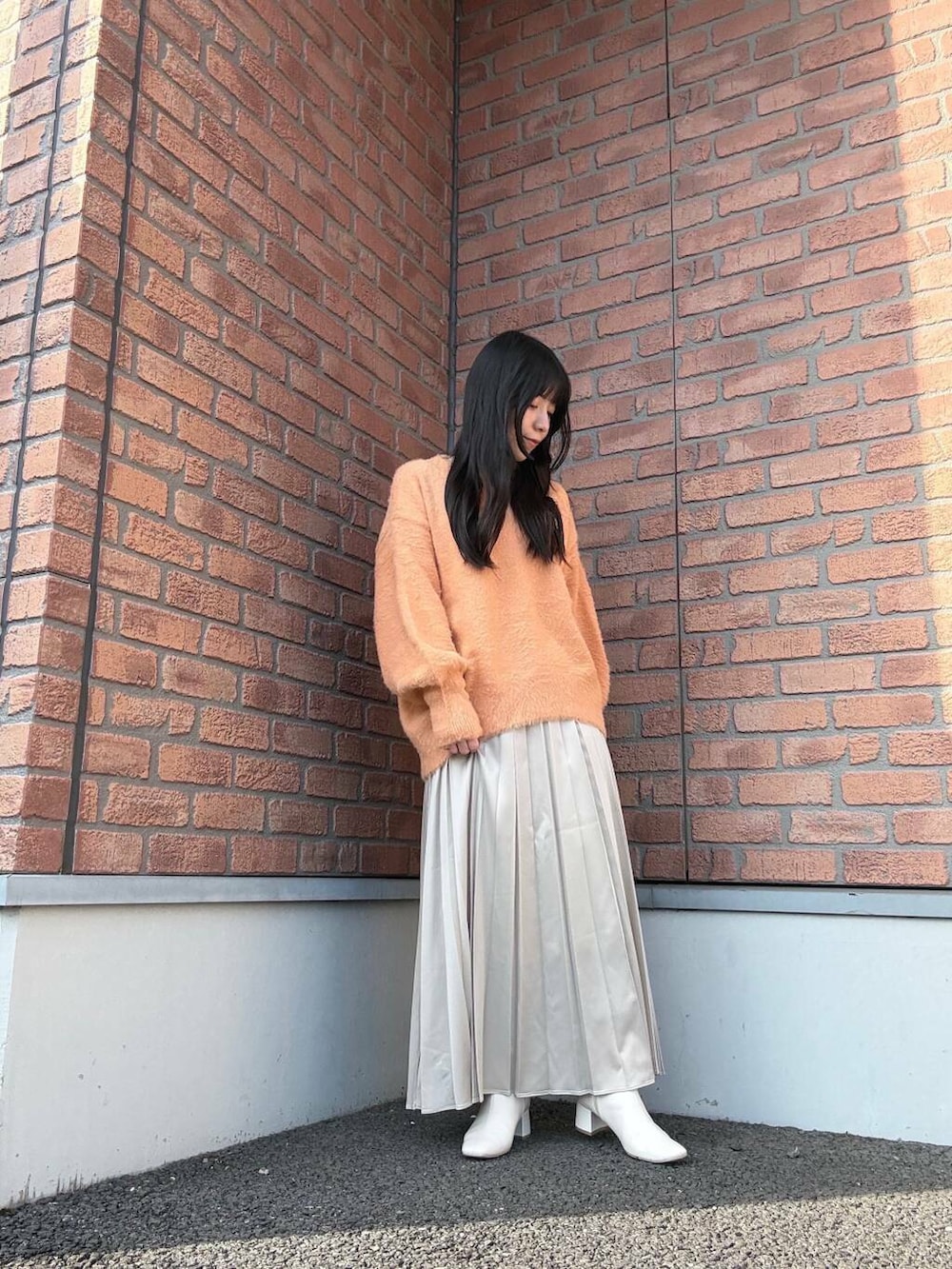 クルーネックで首元スッキリのゆったりジャギーニットにプリーツスカートで楽ちんカジュアルコーデにしました☺️