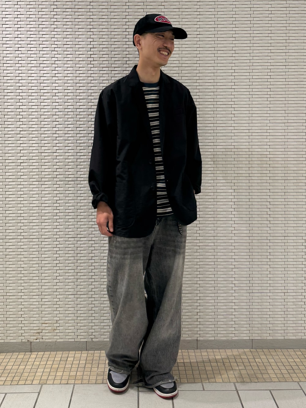 帽子の上からも被れるフードなのでストリートっぽく合わせるのもオススメです!