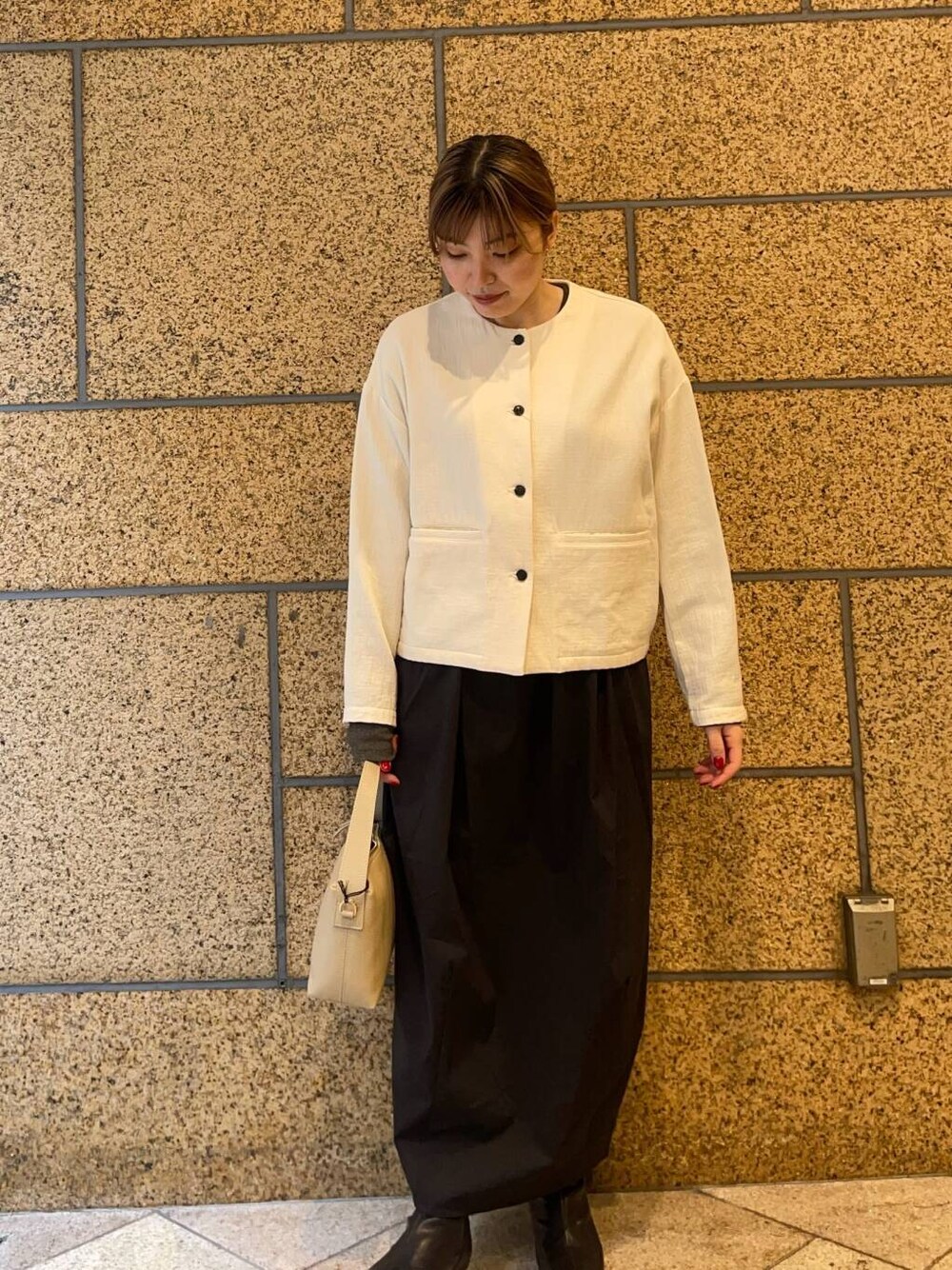 春っぽいジャケットを合わせてモノトーンコーデに仕上げました☺️