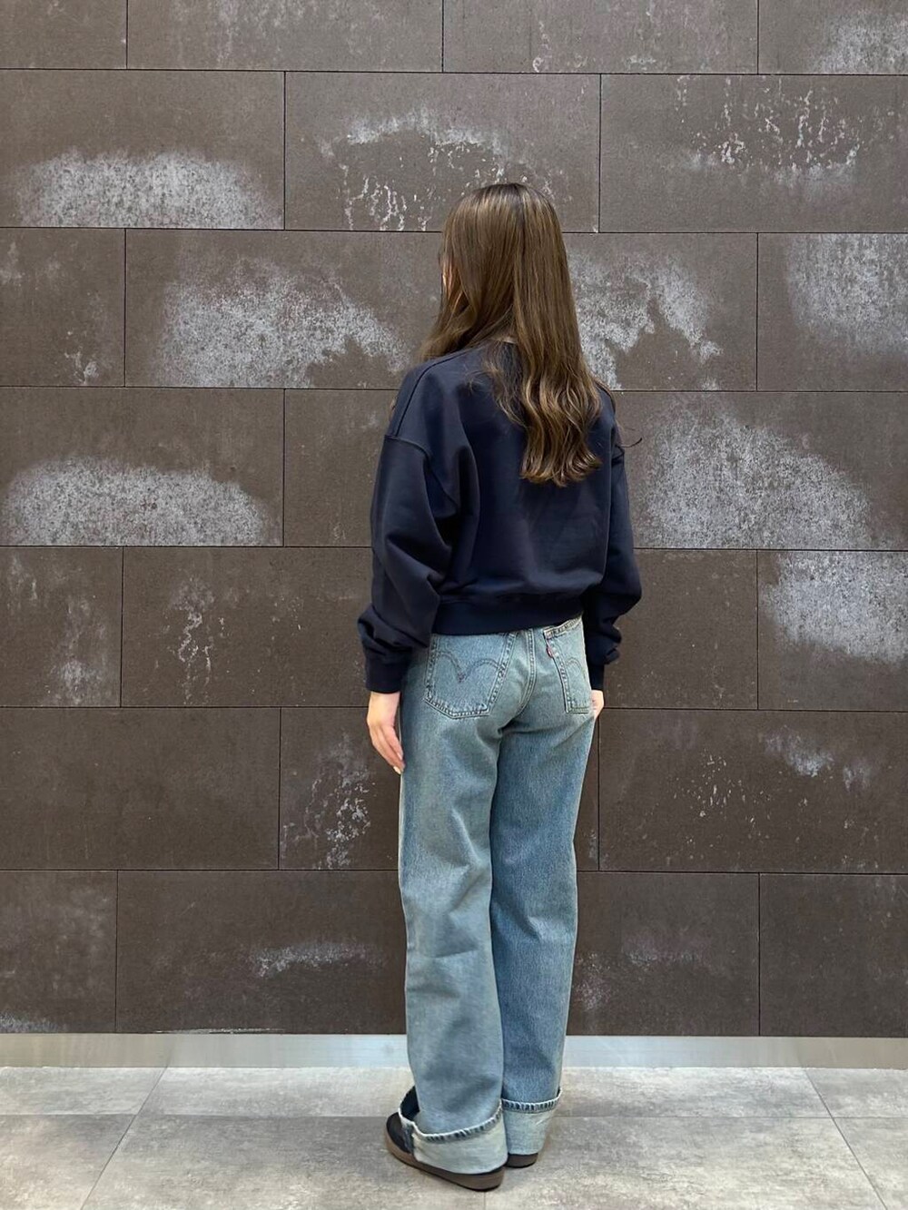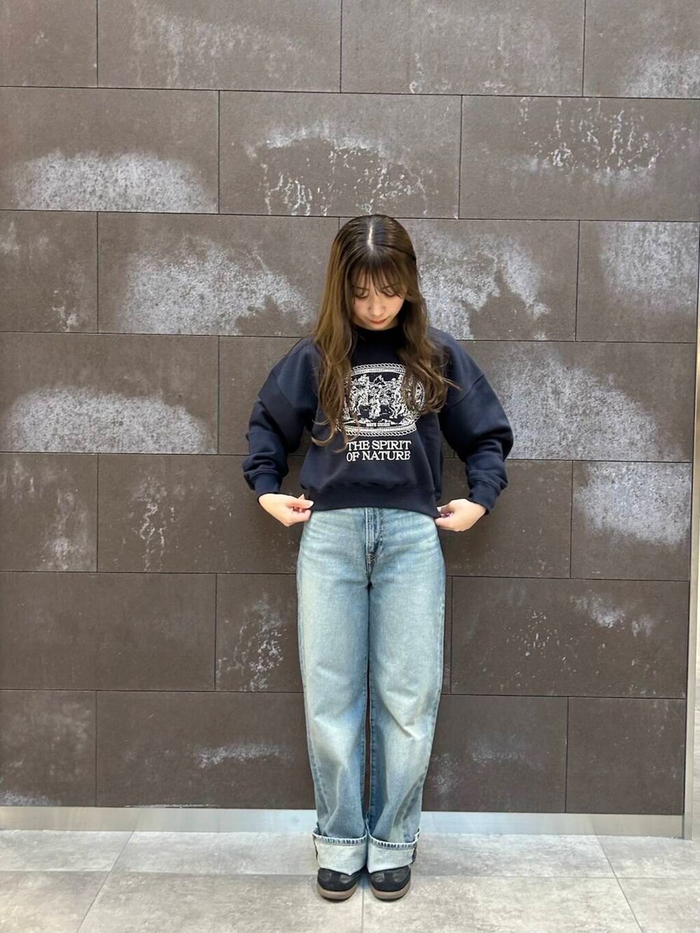 デニムを使い、春らしさを少し取り入れ、今の時期でも着れるスウェットと合わせてみました◎