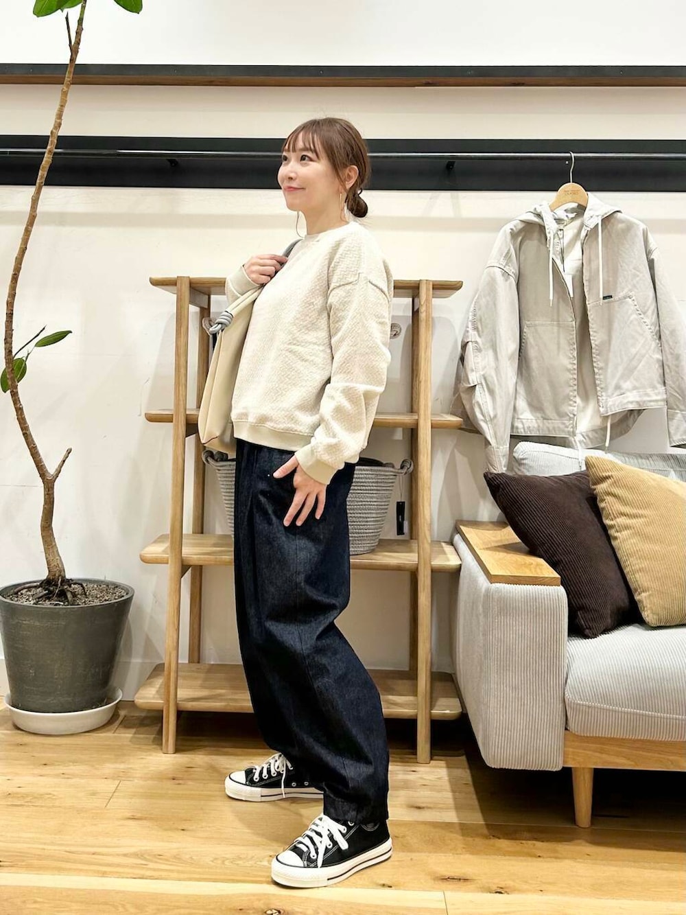 かぐれのボリュームデニムより厚みがしっかりある感じです。オールシーズン使えてシルエットもとっても可愛い!
