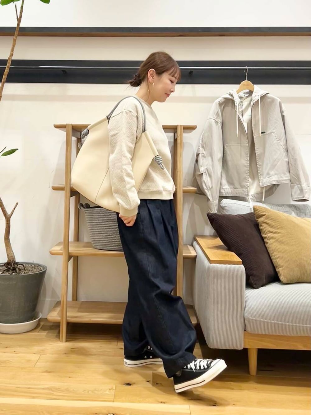 スカートやワイドパンツにもバランス良く合わせていただけます♪