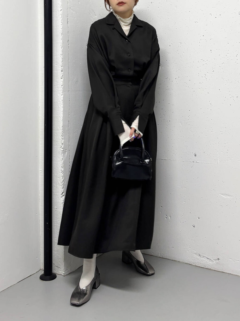 シャツとフレアスカートをドッキングしたようなデザインがポイント!