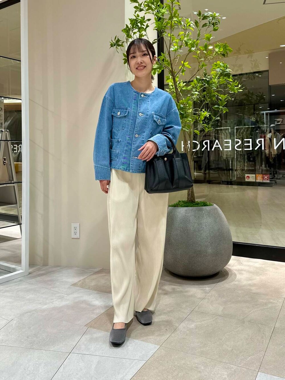ボトムスは、パンツでもスカートでも合わせやすいです✨