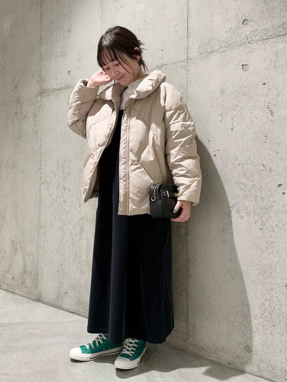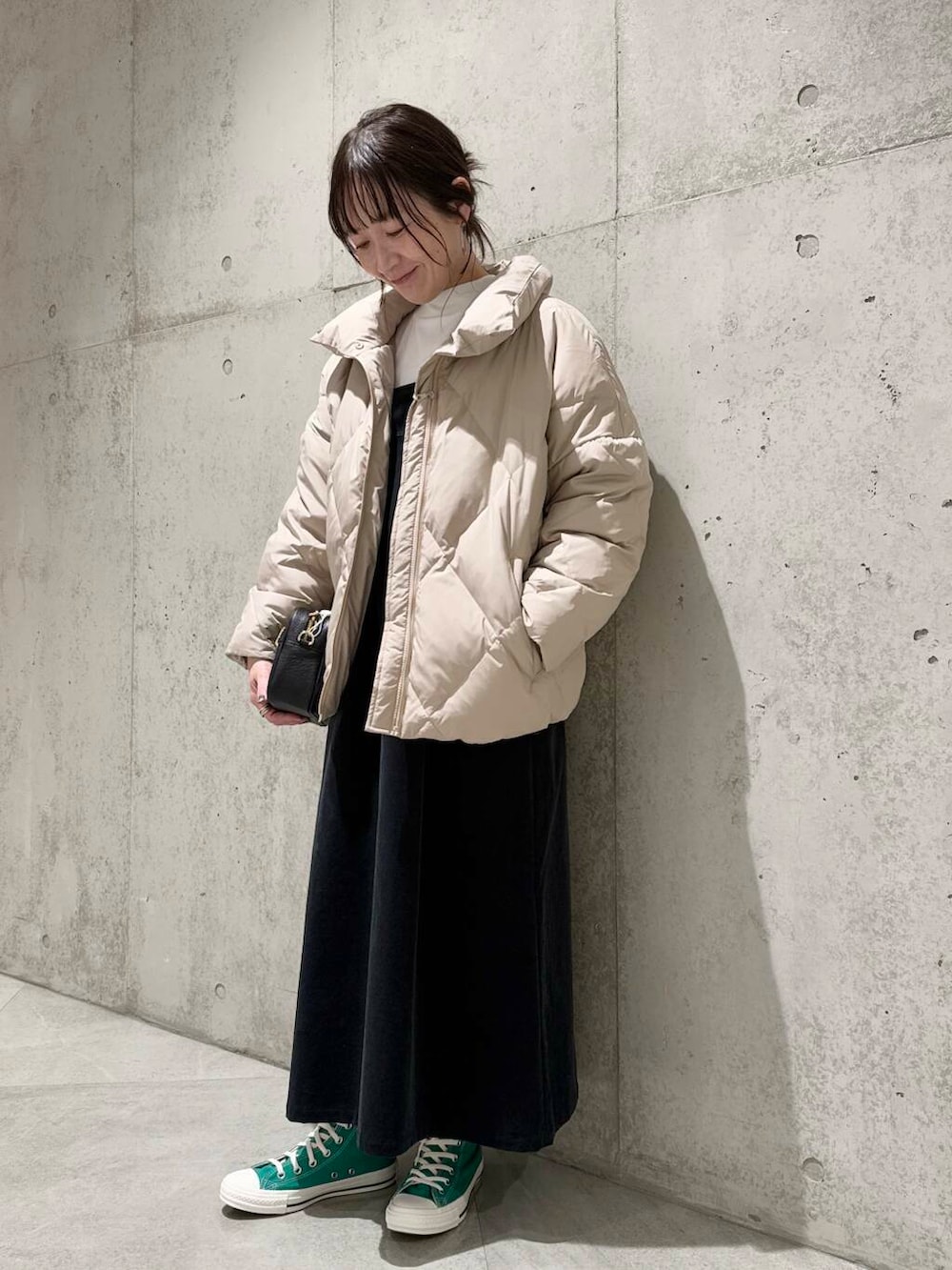 グリーンのコンバースをアクセントに。
